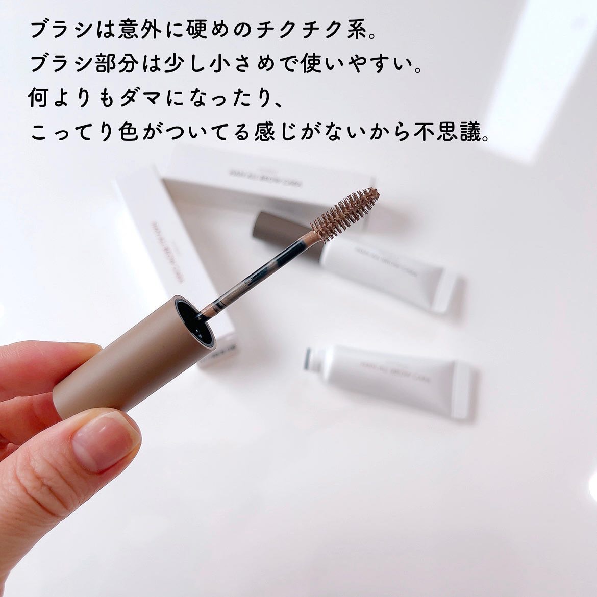 - さっとひと塗りで印象変わるブロウタッチ 1.なりたい眉カラーへ自然にムードチェンジ 2.眉本来の質感を生かし、流れを整え自然な立体感を演出 3.ムラなく仕上がり 1 本 1 本しっかり密着