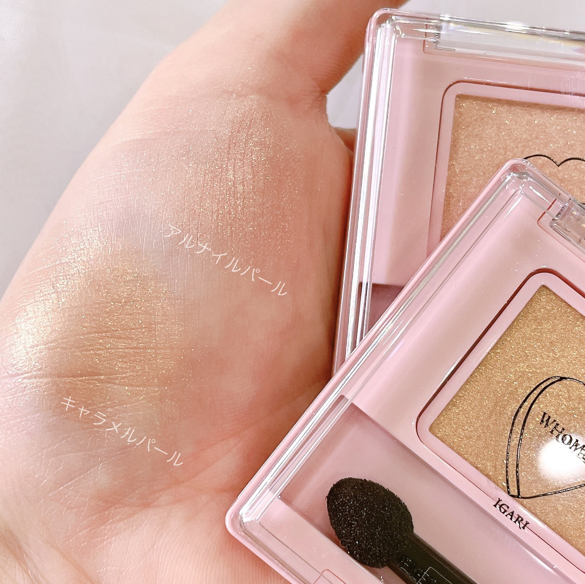 冬はあったかそうなニットを着て瞼をキラキラさせたくなる⋆* WHOMEE(フーミー)さまからいただきました シングルラメシャドウ 左:アルナイルパール 右:キャラメルパール
