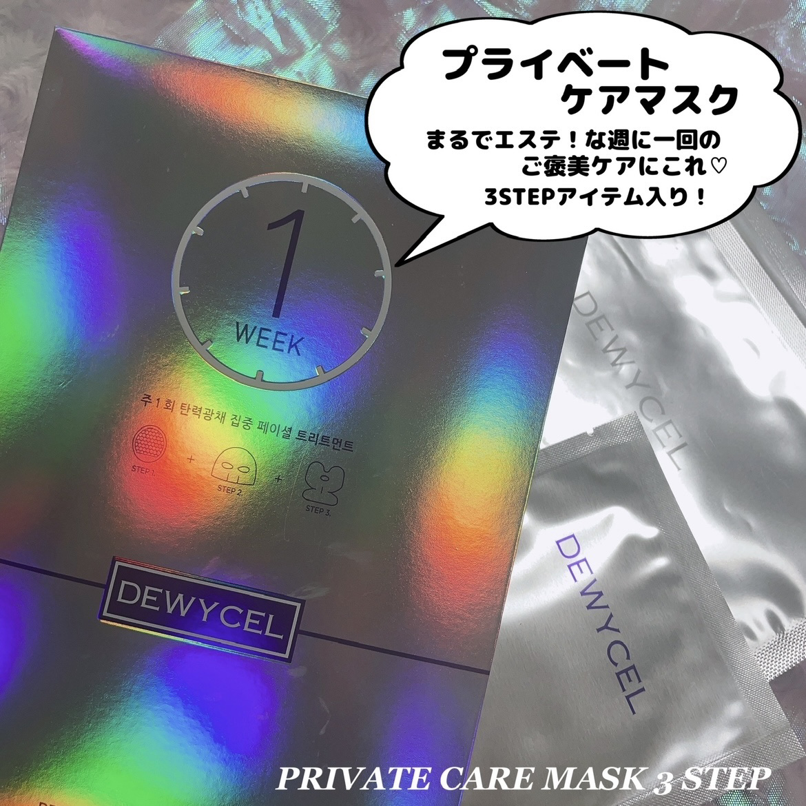 #PRDEWYCELさまからいただきましたデュイセルプライベートケアマスク\1週間に1度のご褒美ケアマスク/アンプルシート、パック(上層&下層)の3STEPのタイプ✨️・アンプルシートしっかりした厚みのあるシートでふき取りやすい凹凸面は優しい...