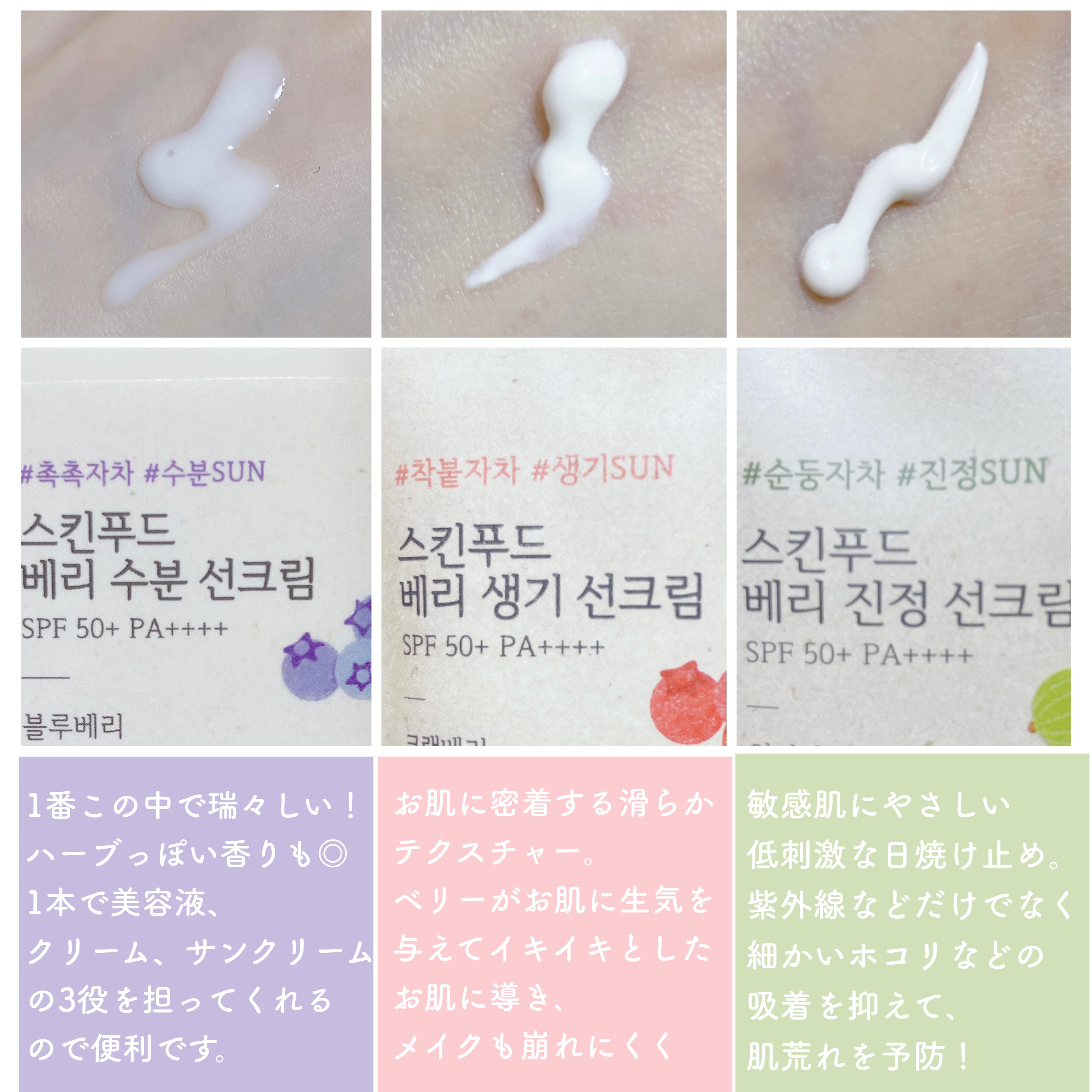 SKINFOOD▶︎BerryMoisturizingSunCream🫐▶︎BerrySoothingSunCream🌿▶︎BerryGlowingSunCream🍓話題のベリー日焼け止め比較してみたよ◎どれも良過ぎて迷っちゃう🔥有機、無機、...