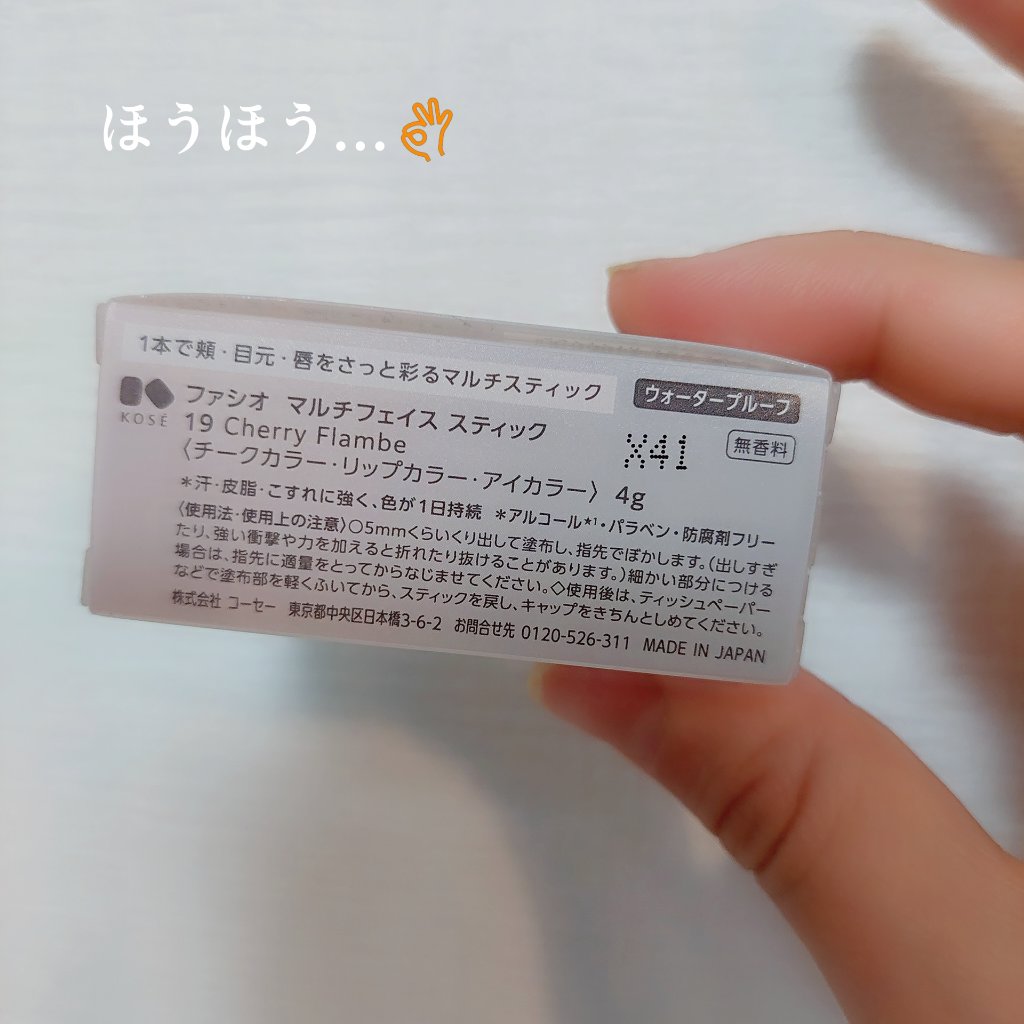 - ぽわ。好きなパーツに気分でなじませて。頬・目もと・唇にさっと色をまとえるマルチスティック。 ● これ1 本で頬・目もと・唇をさっと彩るマルチスティックです。いつでもどこでも簡単に塗れて、ぼかせます。 ● タッチプルーフ成分配合。動きに強い膜を形成するため、こすれに強く、化粧もちにすぐれています。 なじみつづく処方 なじみ:フェザーフィット成分配合。ふわっと軽い使用感でサラサラの質感を実現。 肌と一体化したようにメイクがなじみます。/ 肌になじむ色設計 つづく:ウォータープルーフ&皮脂プルーフ&タッチプルーフ。汗・皮脂・こすれに強く、色が持続します ※当社調べ。個人差があります。09.10を除く。 ● アルコール(エチルアルコール)フリー/ パラベンフリー/ 防腐剤フリー/ 無香料 〈配合成分〉 ● 5 種のオーガニック植物抽出成分・スクワラン(エモリエント) 5 種のオーガニック植物抽出成分はオリーブ果実油・ホホバ種子油・サフラワー油・シア脂・ゴマ種子油。フェザーフィット成分は窒化ホウ素。 皮脂プルーフ成分はシリカ。タッチプルーフ成分はポリエチレン。