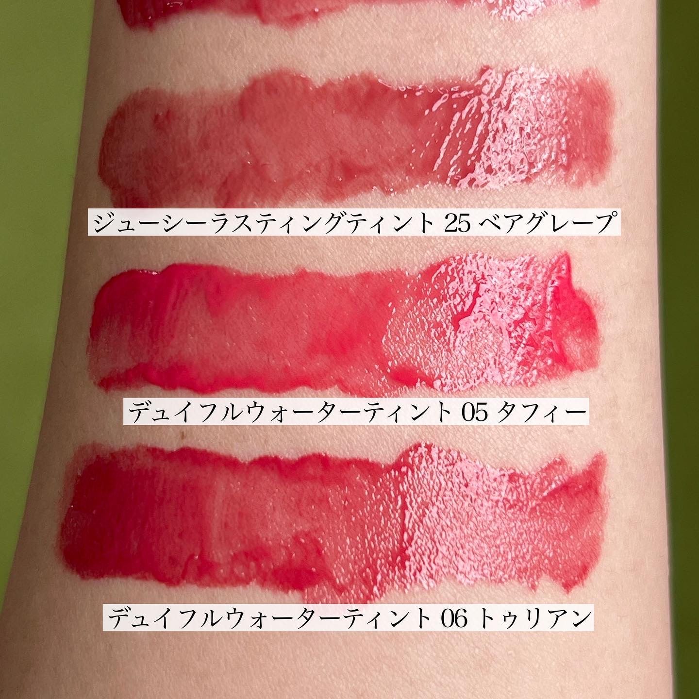 もーーーまずパッケージが可愛すぎるよね😢❤️❤️ 迷いなく全色買ってしまったよ…! 既存のジューシーラスティングティントに比べて ⚪︎サラッとしたリキッド ⚪︎やや薄づきな発色⚪︎艶々? 個人的にはロムアンドでは 最近こそ出るようになったけど ブルベ向きのカラー(特にサマー)でドンピシャが あんまり無いなあと思っていたので、 今回とっっても5〜8番が可愛くて ひじょーーーーーーに!満足しております💪❤️❤️