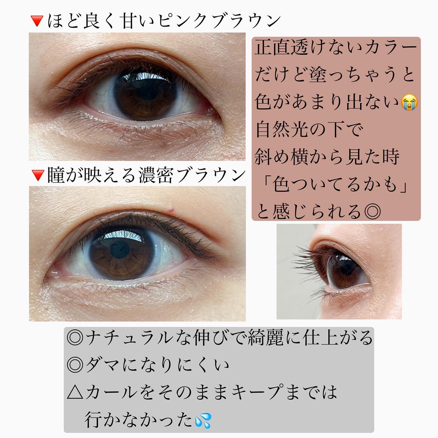 | ブラウンのマスカラだと優しい印象になるので、デートや気分を変えたい時などに! | 詳細を見る | ||