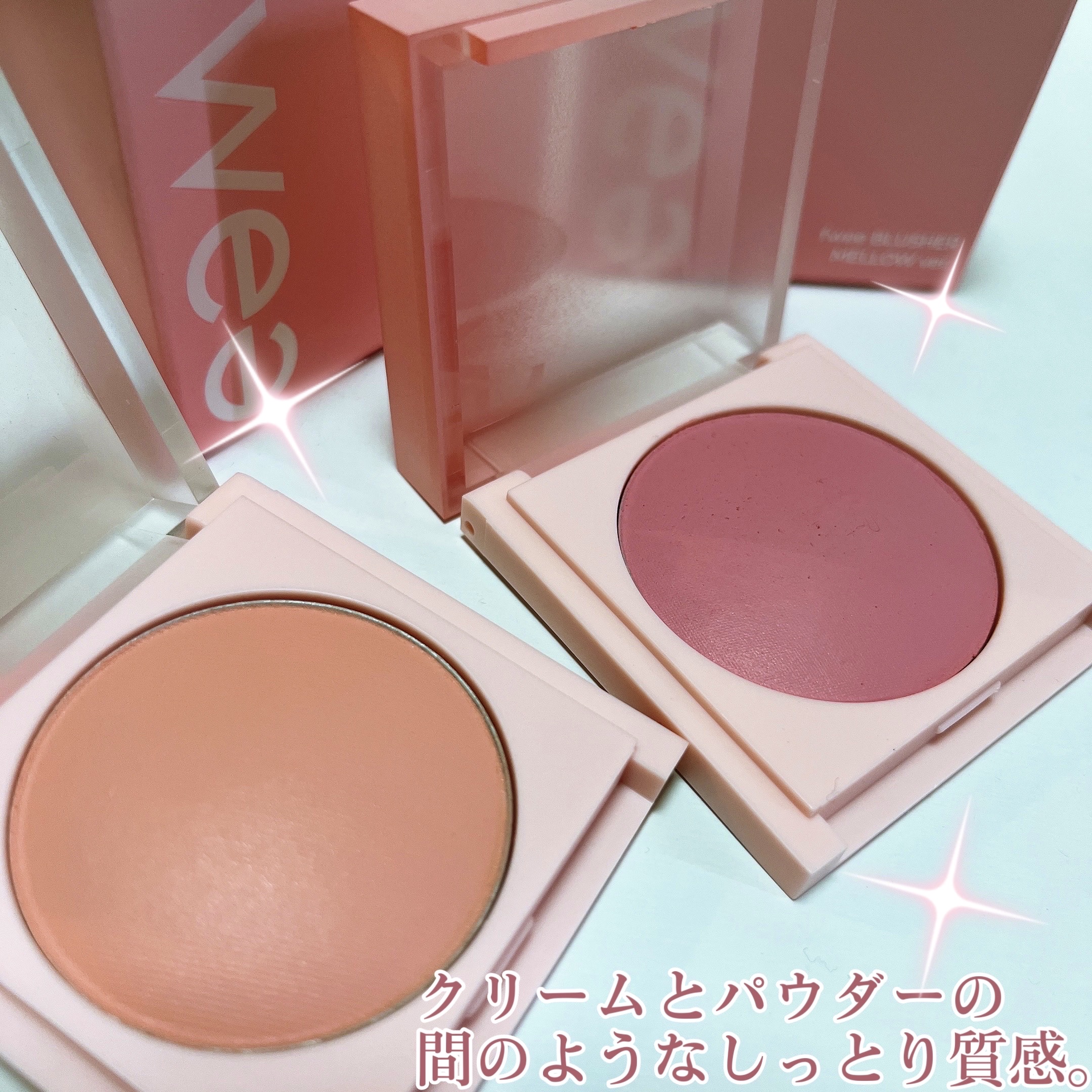 fweeデュアルチークメロウCR01ジューシースマイル光の加減で写真の色味が変わってしまったので2枚載せてます。淡いアプリコットピンクと濃いめのピーチピンクでイエベ春大優勝カラー🍑テクスチャーは確かにぷにっとしてますが、特に伸ばしにくい感じは...
