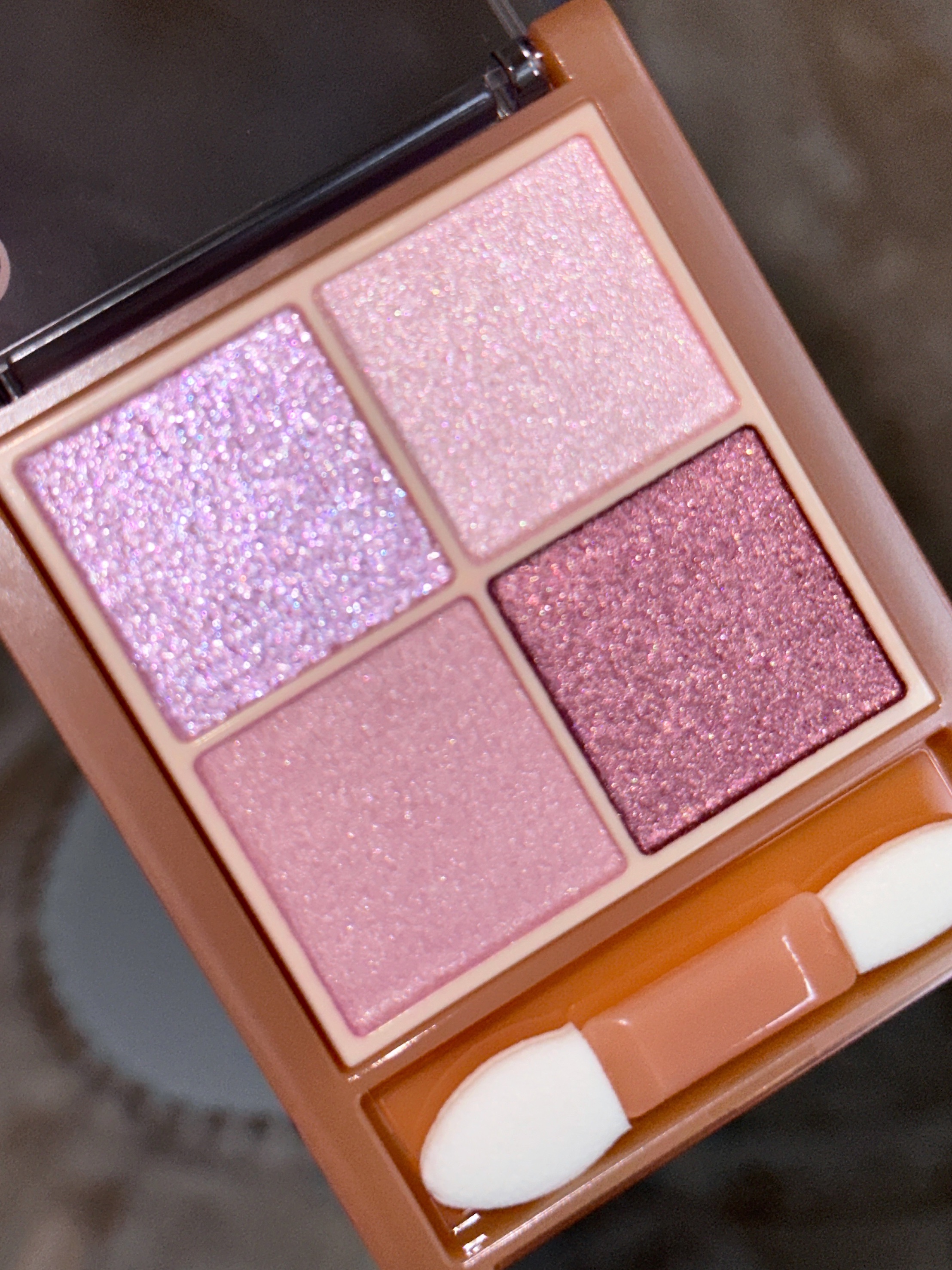本当にかわいいパレットミ・◦・ミ🎀 買って良かったアイシャドウです🩷 ブラシで右上ピンクに左下、右下のパープルブラウンを重ねて、左上のラメを涙袋に(ㅅ´꒳` ) あきちん、ありがとう(。•ㅅ•。)