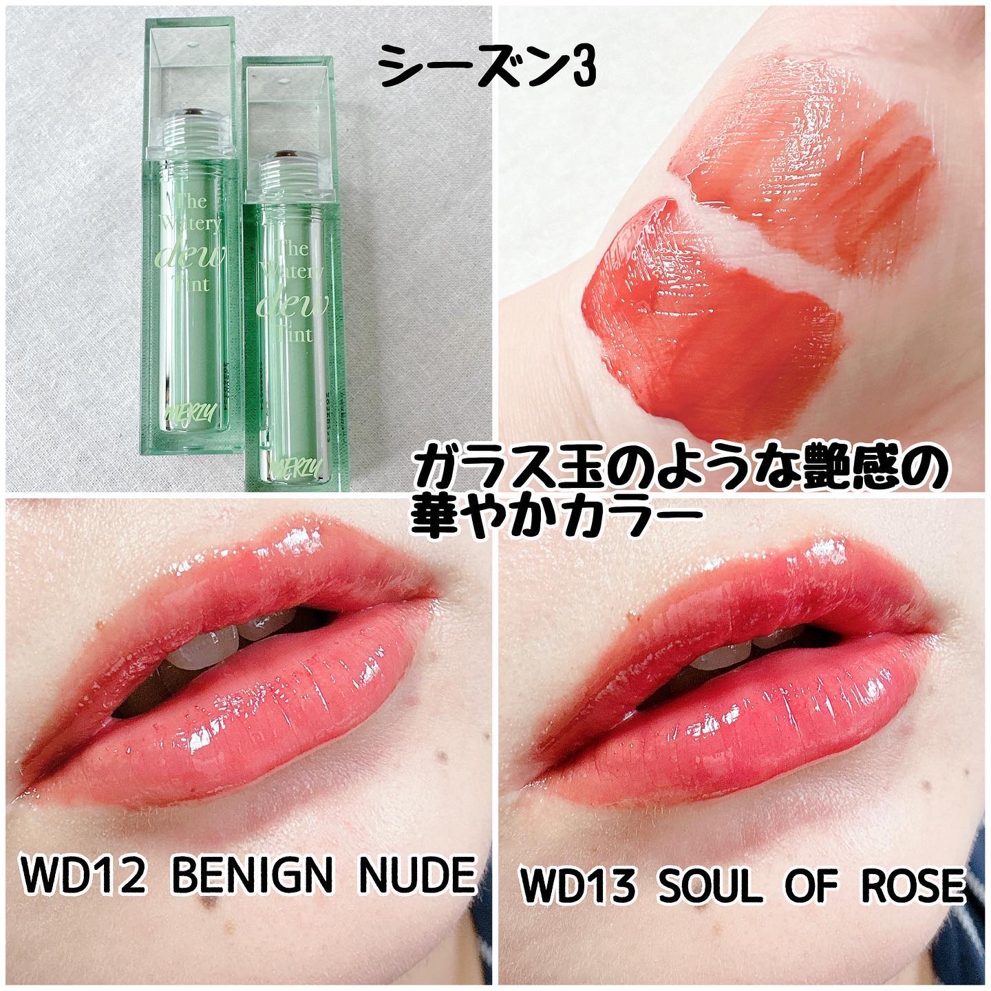 \ほんのり血色感🫶🏻❤️🔥/♡MERZYTheWaterydewTintWD13SoulofRoseほんのりと血色を与えるモヴローズ。明るめのカラー。ローズ感というよりかは、赤みを感じる!さっとひと塗りするだけで血色感がプラスされる鮮やかな...