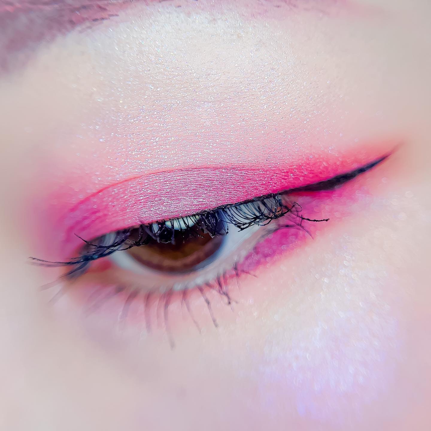 ピンクにグレージュも良いですね👌💗 今日は可愛らしい感じにしてみました💕 上下瞼黒目〜目頭側にラメを塗ってキラキラさせております🤩 目尻はマットのピンクを濃いめに重ねて💗 グレージュのアイライナーと相性◎