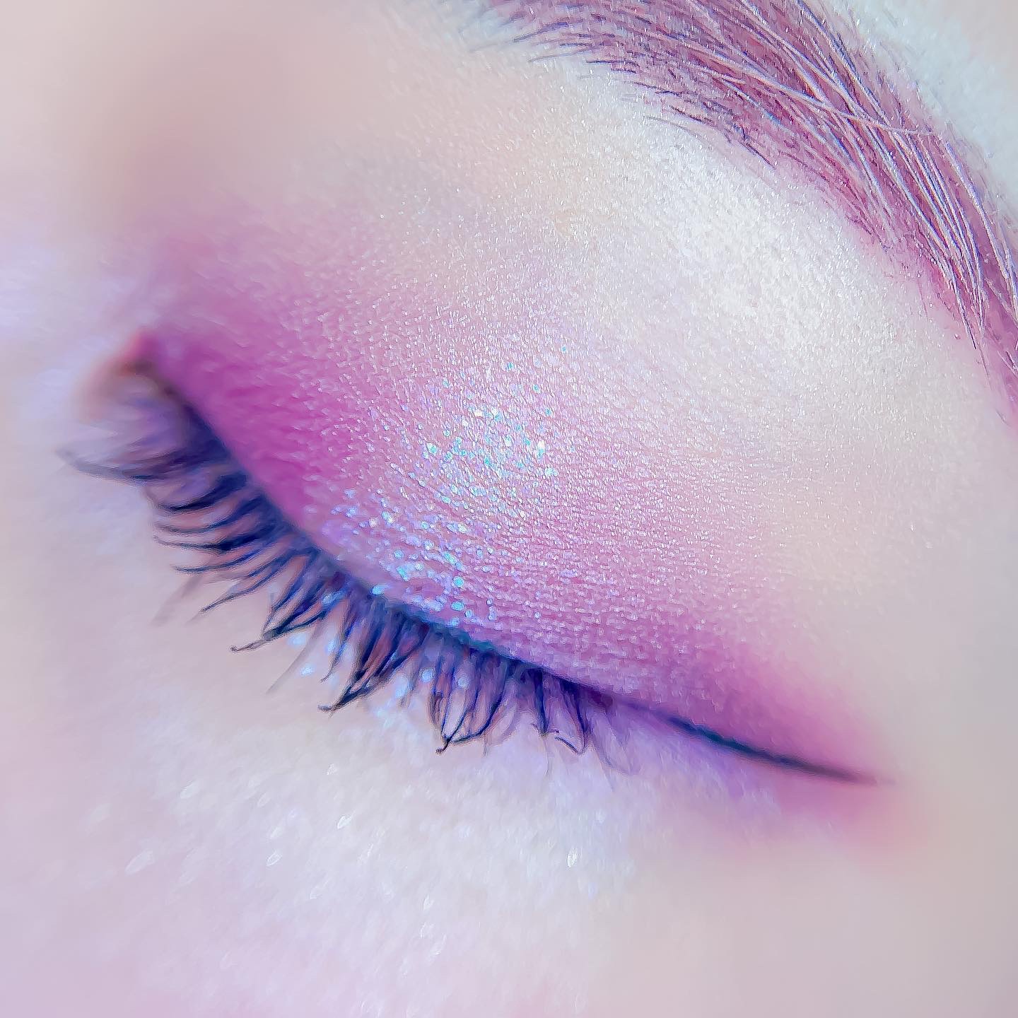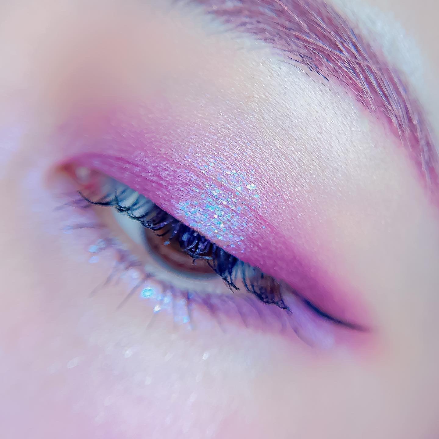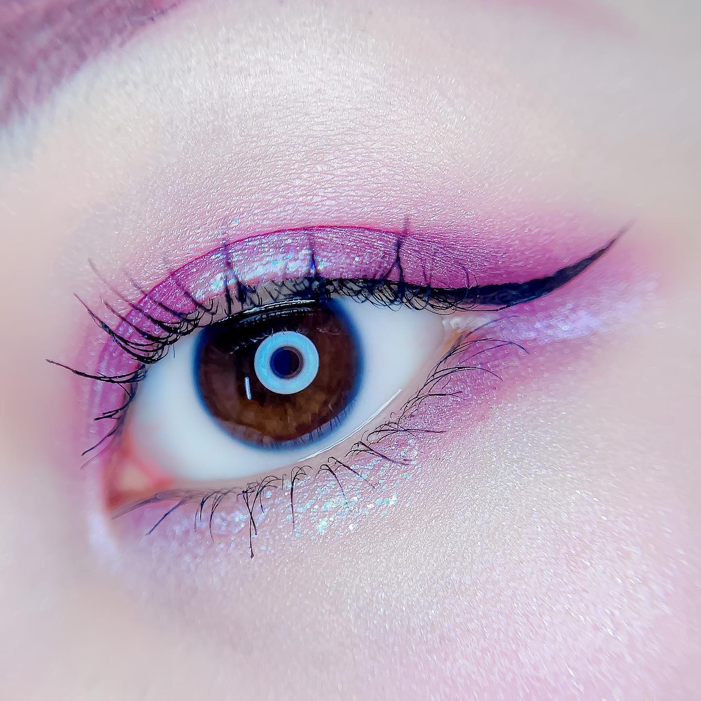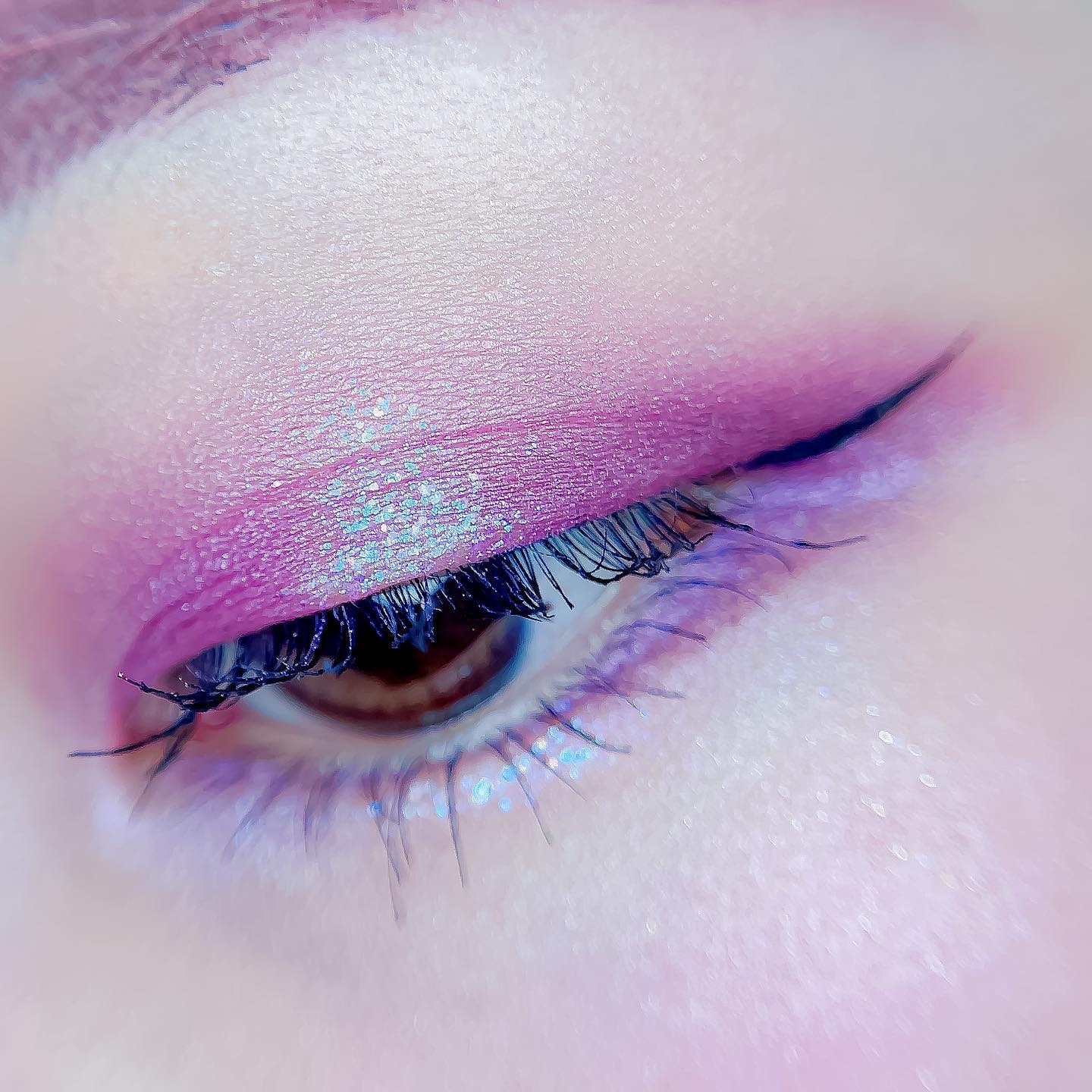 ピンクにグレージュも良いですね👌💗 今日は可愛らしい感じにしてみました💕 上下瞼黒目〜目頭側にラメを塗ってキラキラさせております🤩 目尻はマットのピンクを濃いめに重ねて💗 グレージュのアイライナーと相性◎