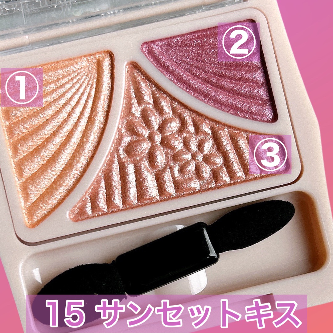 - パウダーなのにみずみずしい♥ 自然な立体感をつくりだす3色アイシャドウパレット 仕上げのコートで、ジューシー感&モチUP! メインカラー&ラインカラーはフィッティングオイル配合のしっとりパウダーで、 まぶたに吸いつくように溶け込み、ジューシーコートスフレで覆うことによって、 濡れたようにツヤめく愛されまぶたで透明感のある目元を演出します。