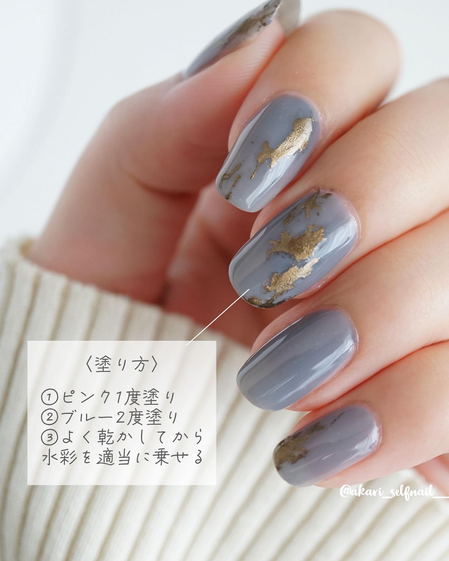 ベースにフレークをふぁさっと乗せて乾かしたら 2色をランダムに塗り重ねるだけ。 シアーだからぼかし不要で ニュアンスっぽくなるのありがたい…🥹 室内でも外でもずっと眺めていられるような 美しいカラーでした✨ 色味もラメ感も好きすぎる💙