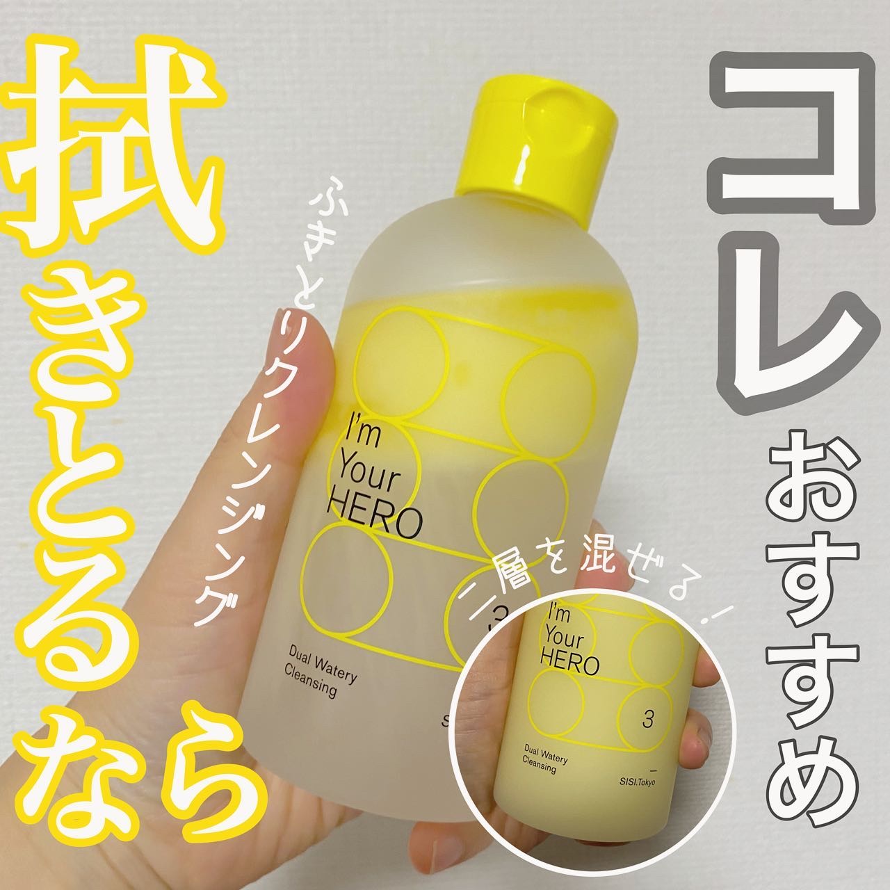 \振ってふくだけで肌が整う/▶︎SISIアイムユアヒーローライトオイル×美容液の2層をシェイクすることで美容液がオイルを包み込み、美容液で洗っているかのようなウォータークレンジング。メイクオフだけでなく、洗顔、毛穴ケア*1、角質ケア、保湿まで...