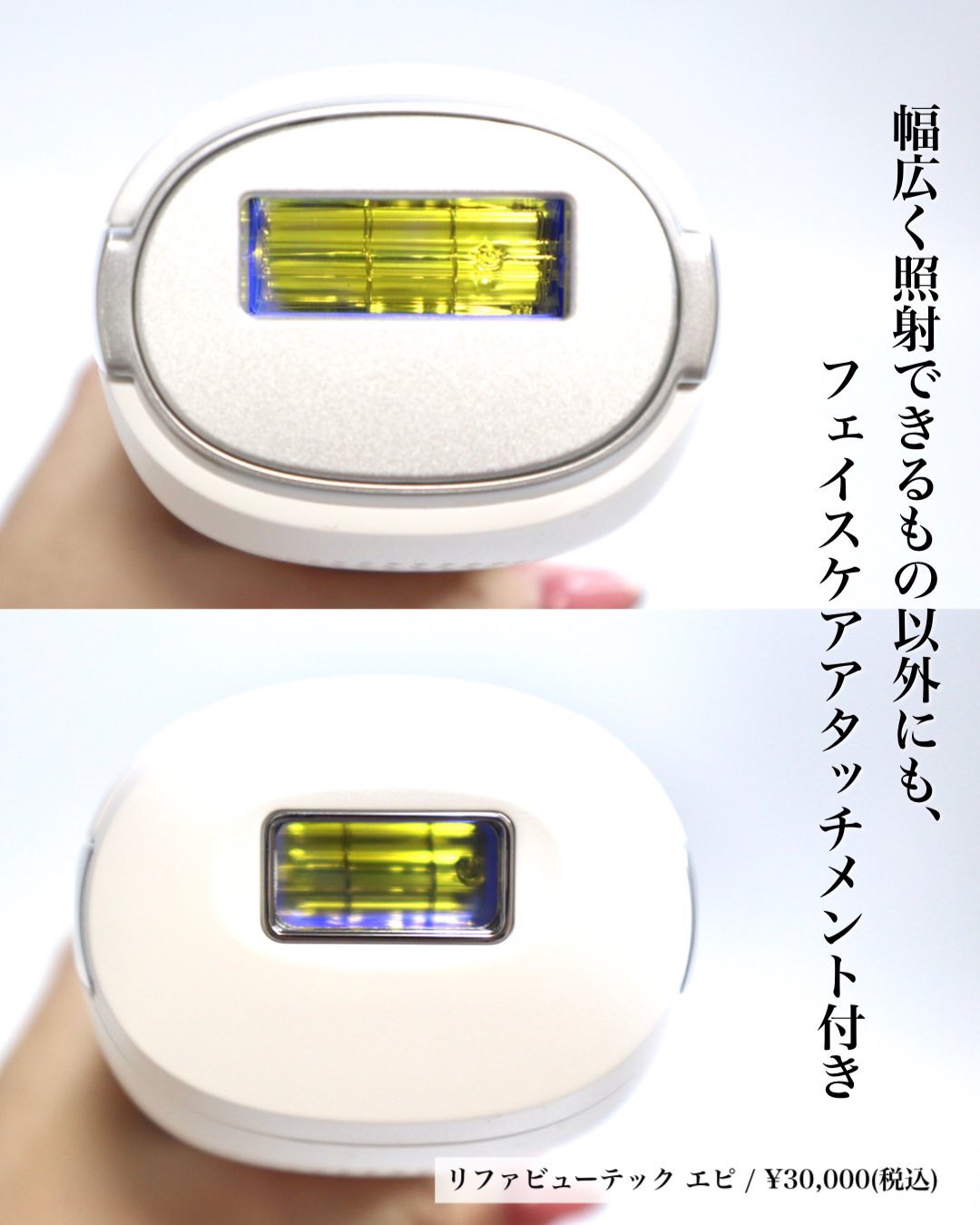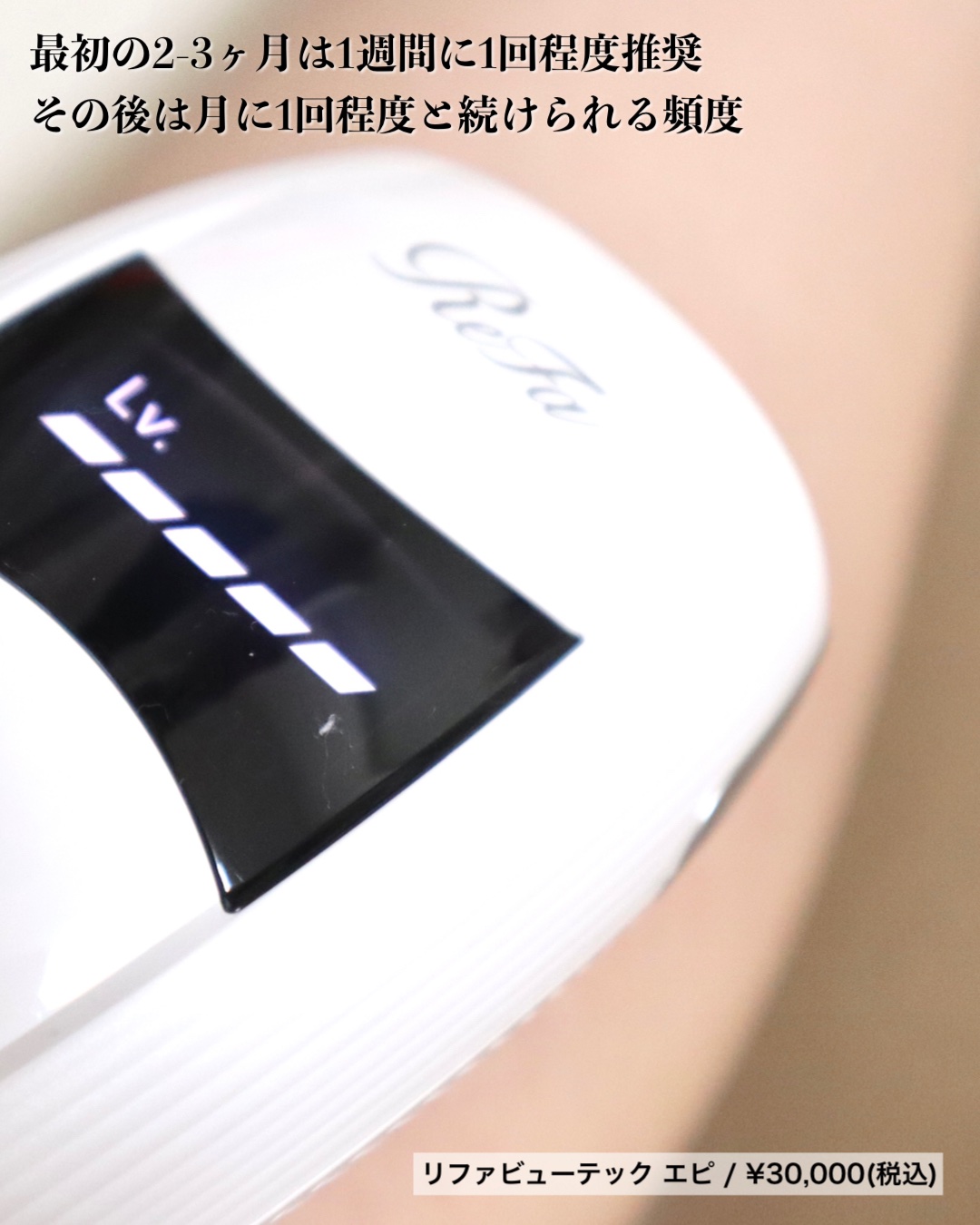 ReFa BEAUTECH EPIを遂に使い始めたよ🤍 箱から光美容器、ギャランティーカードまで全てがリファらしくて、本当に素敵なの🥹 シンプルで無駄のない美しいデザイン🤍 使い方もシンプル!オートモードに設定すれば1回ずつボタンを押さずに自動で照射できて便利✨ リファは見た目が可愛すぎて使うのを楽しみながらムダ毛ケアできてる🐰🤍