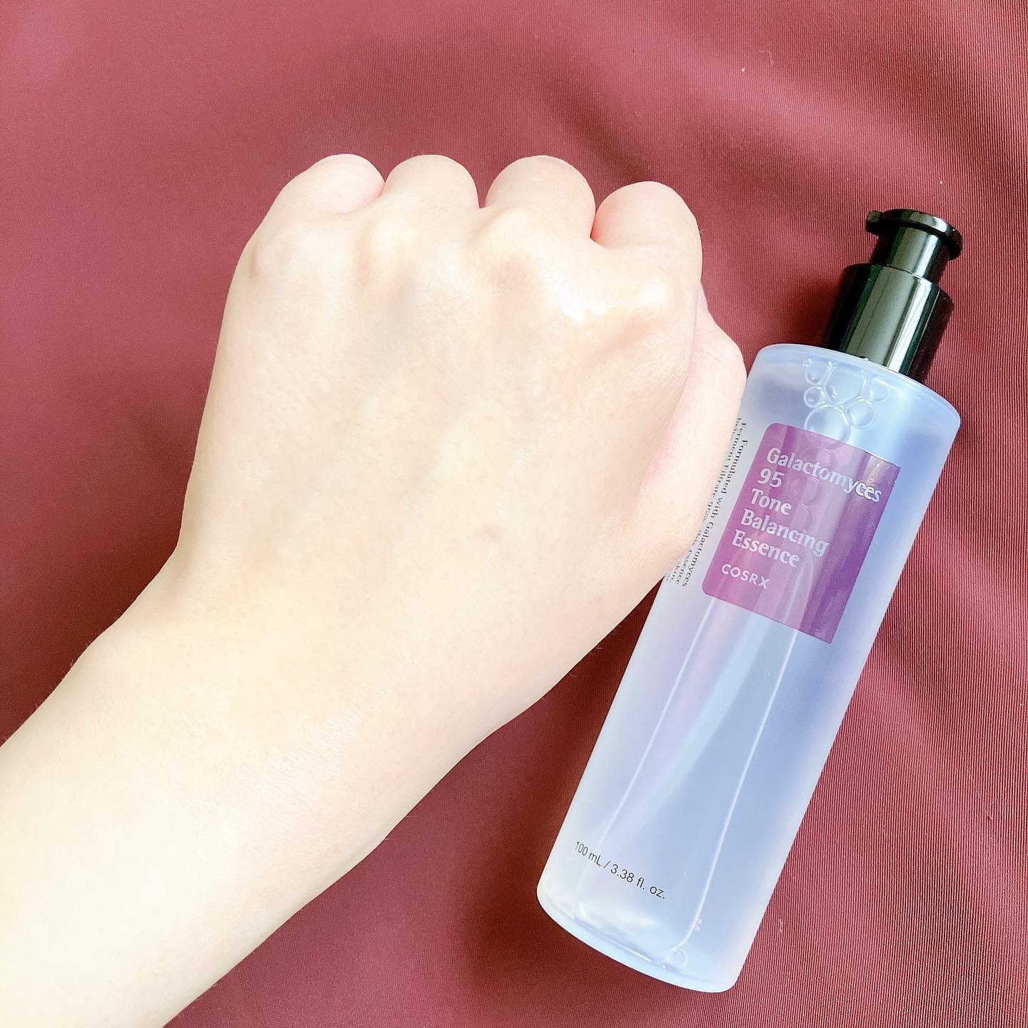COSRXのガラクトミセス95トーンバランシングエッセンス🤍⠀少しとろみ系のテクスチャーで肌なじみ◎⠀私は4プッシュとたっぷり使ってる🙌🏻💗⠀少しでも肌の透明感アップするといいな🥺⠀化粧水だけどストックたくさんあるので導入として使う予定✌️✨...