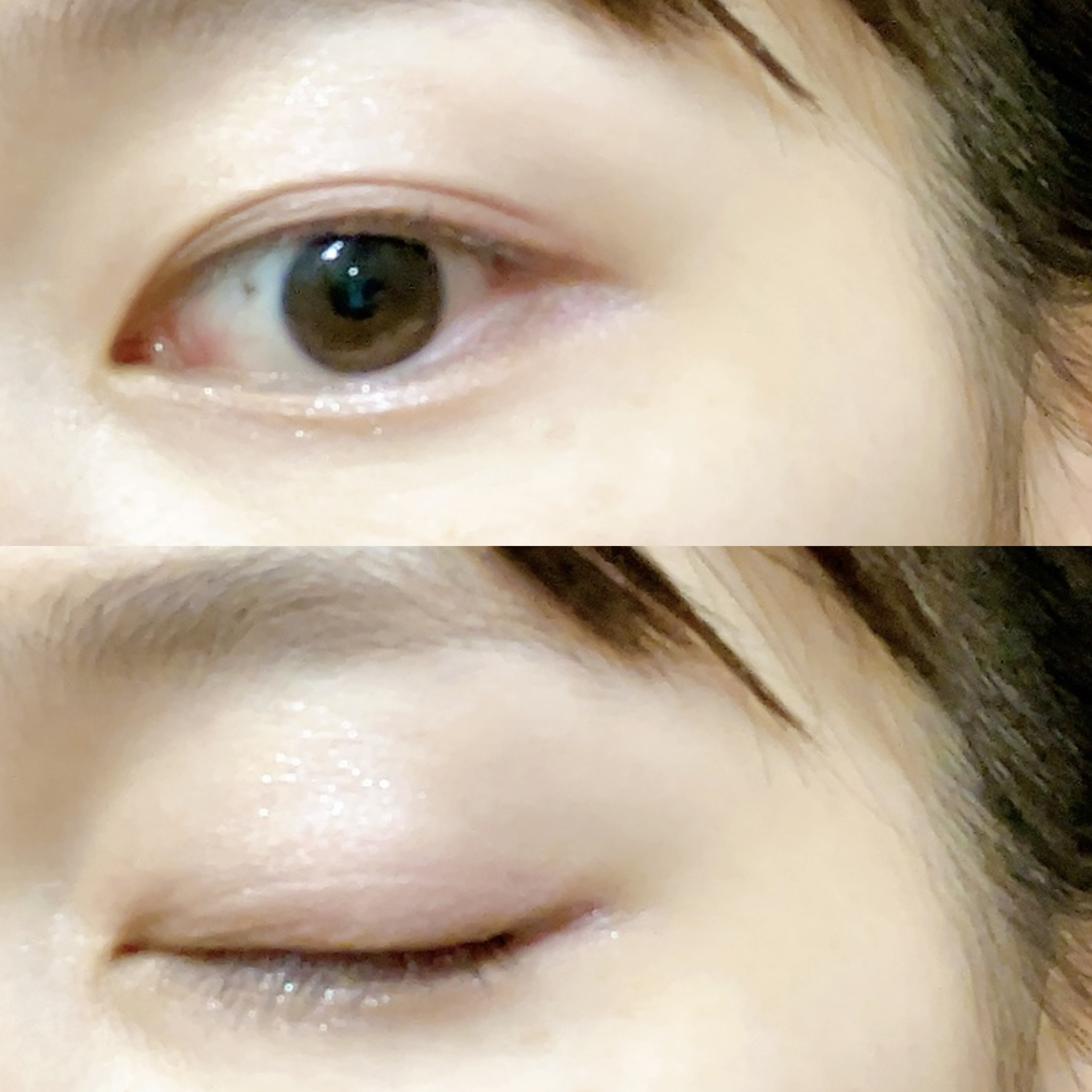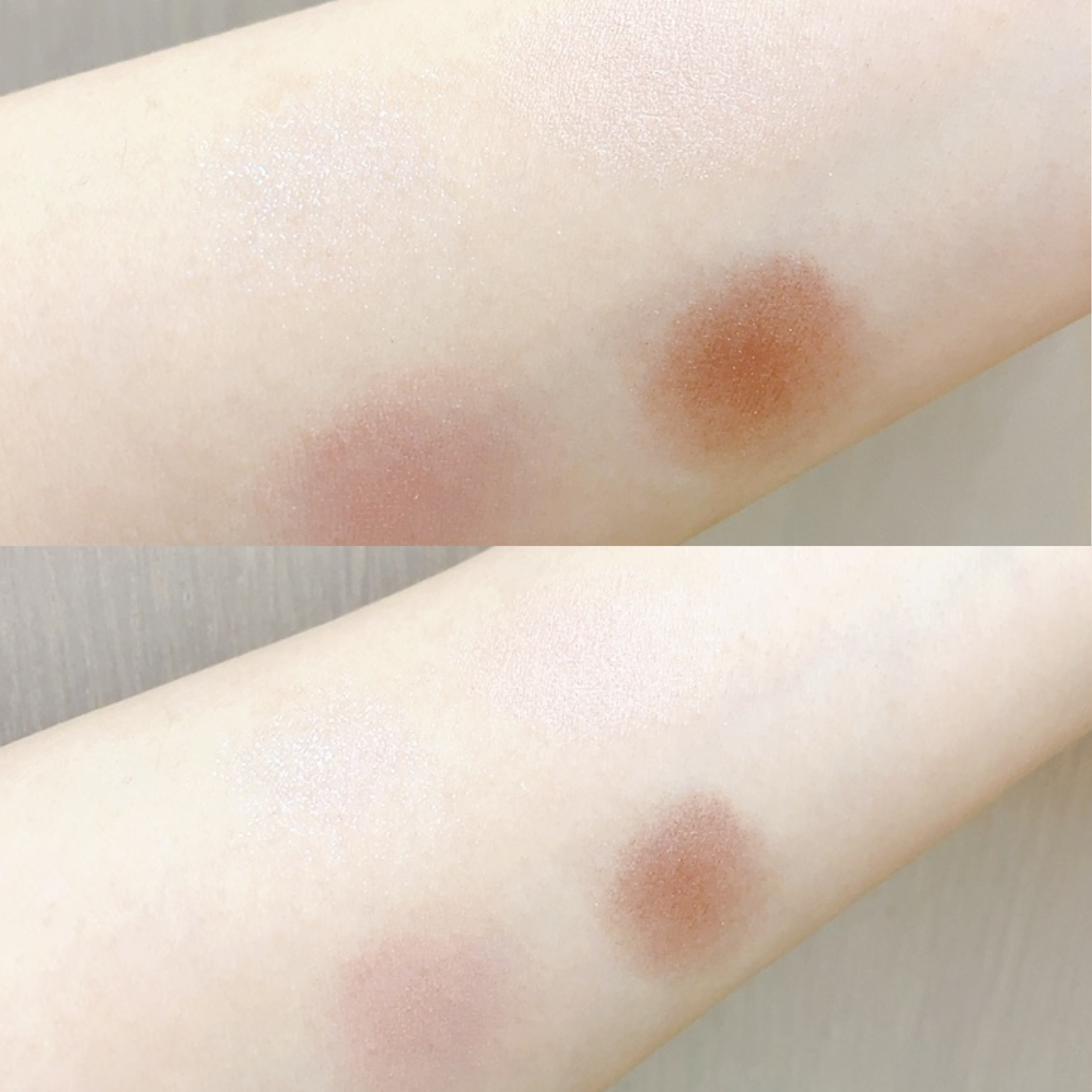 粉質がしっとりしているので密着度が高く色持ちも良いです♡ 左上のラメは濡れ感があり、涙袋に塗るとめちゃくちゃ可愛いですꕀ꙳ 右上のイエローベージュはアイホール全体に塗ってます。目元が明るくなる! 左下のコーラルピンクは目の下に塗ると粘膜拡張っぽくなり目がデカく見える…👍🏻 ̖́- 右下のブラウンは濃いカラーではないのでめちゃくちゃ使いやすい…❣️締め色としても使えるけど、二重幅に塗っても全然大丈夫でしたꕀ꙳