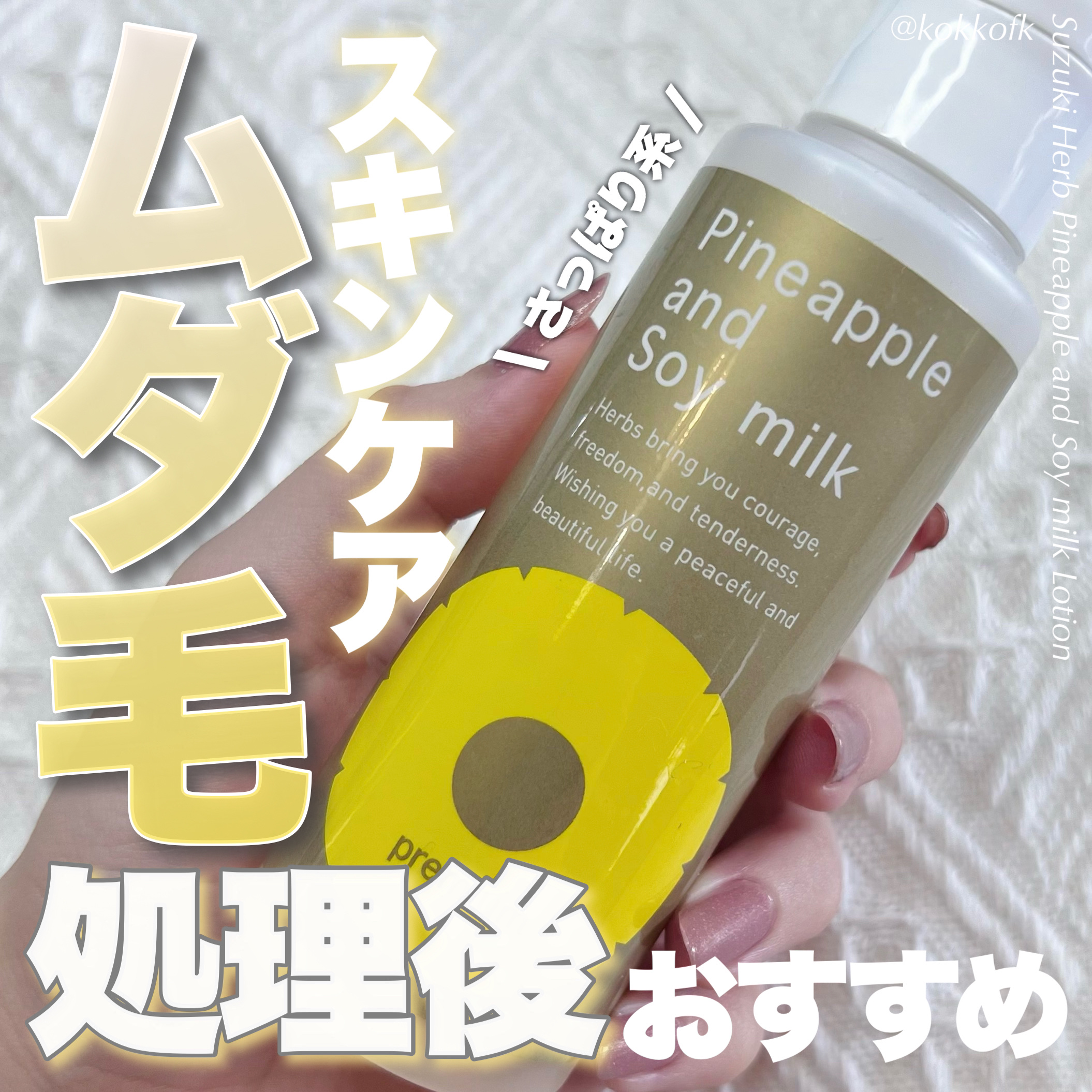 - 「パイナップル豆乳ローションプレミアム」に含まれる高純度のダイズエキスとパイナップルエキスが、ムダ毛ケアを楽にし、ツルスベ肌に導きます。 洗顔、からだの洗浄後、パイナップル豆乳ローションを一番先にご使用ください。 その後、化粧水や美容液など、お手持ちの化粧品をご使用ください。 ※ 一番先に塗ることで、ムダ毛ケア成分が浸透しやすくなります。 また、次に塗る「他の化粧品」の浸透を助ける効果もあります。 ※生後3カ月よりご使用いただけます。 ★使用できる部位★ 腕・ワキ・足・背中はもちろん、顔やVIOにも使用いただけます。 2023年10月30日(月)リニューアル発売
