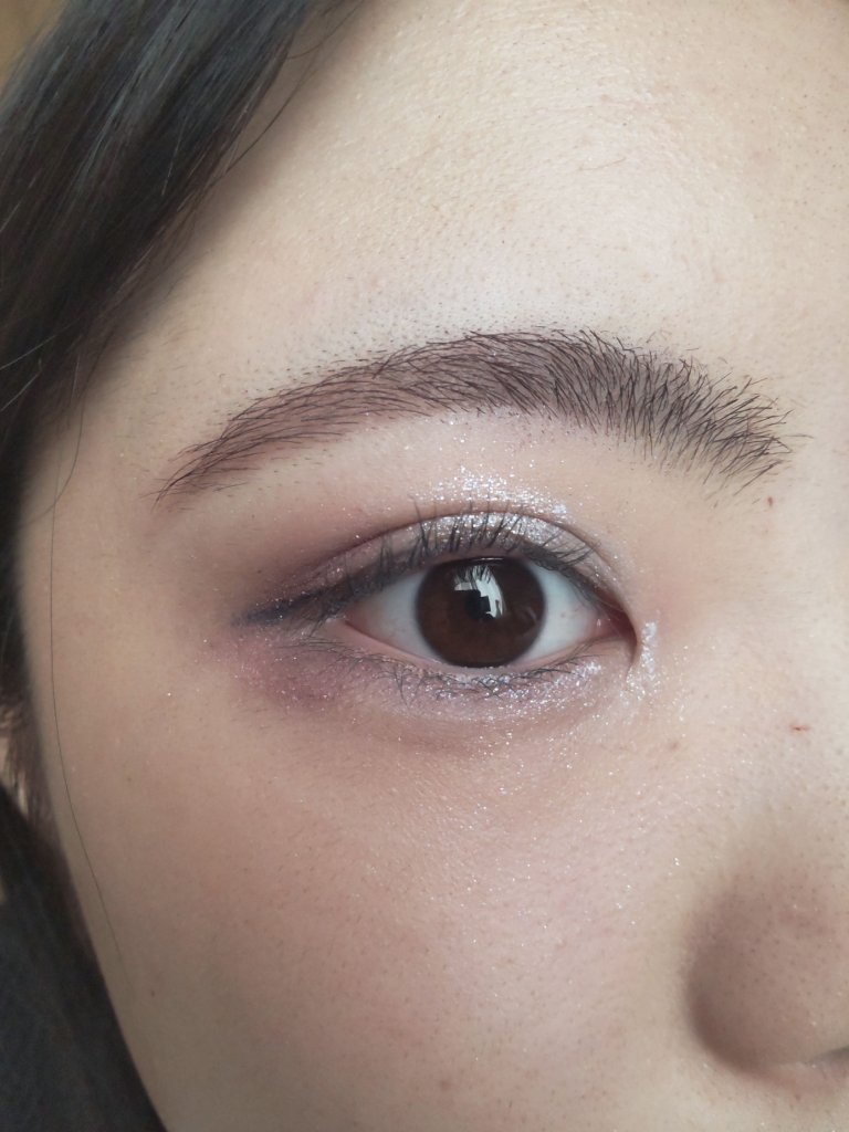 水色ラメとブラウンの不思議な組み合わせ でも可愛い! 他の色より芯が硬めで、発色させようとしてゴリゴリ描いてしまう…瞼に負担かかってそう💦 この色のシャドウの時に、儚い感をプラスするためにまつ毛も薄めの色にしてみてるどうかな…