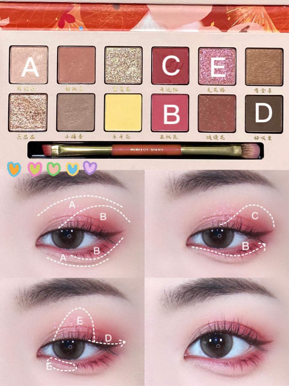 PERFECTDIARY/動物アイシャドウパレット ピッグマーメイドピンク、ドライローズピンク又マスタードイエローで組み合わせたパレット万能日常とともに、強いラメが儚げメイクでも簡単に実現できる浅いピンクをベース色として広めに塗りマスタードイ...