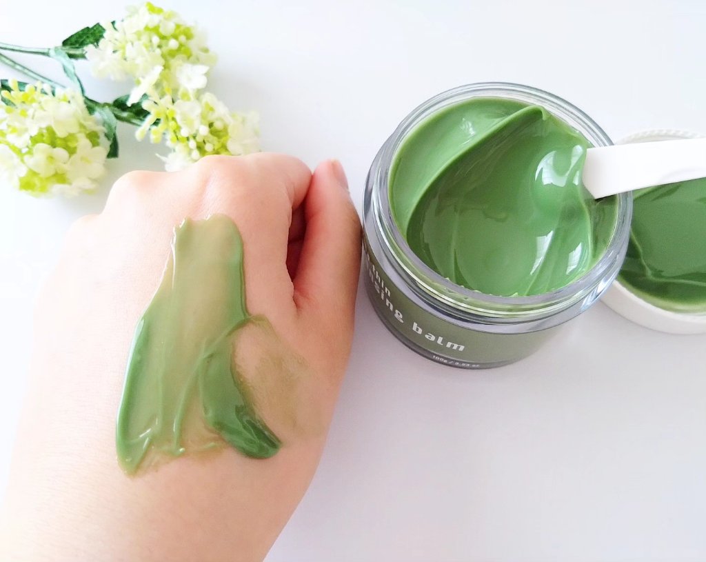 肌への親和力が高いホホバ種子油およびワサビノキ種子油がメイクアップと角質を柔らかく溶かしキレイに洗い流してくれます。箱に入っていて、中は柔らかいグリーンのジャータイプの商品です😁スパチュラも付属されています。蓋を開けるとバームも少しグリーンが...