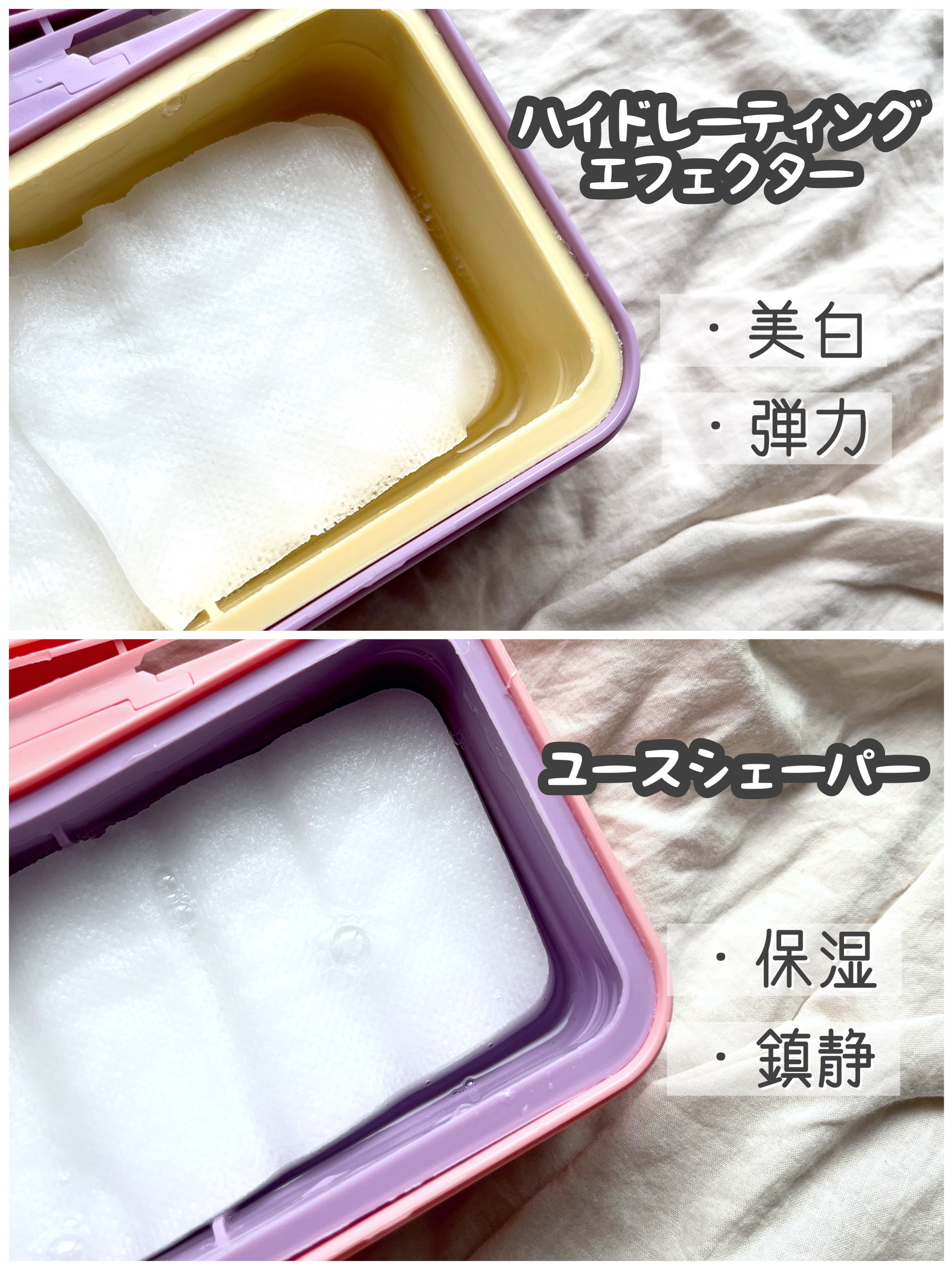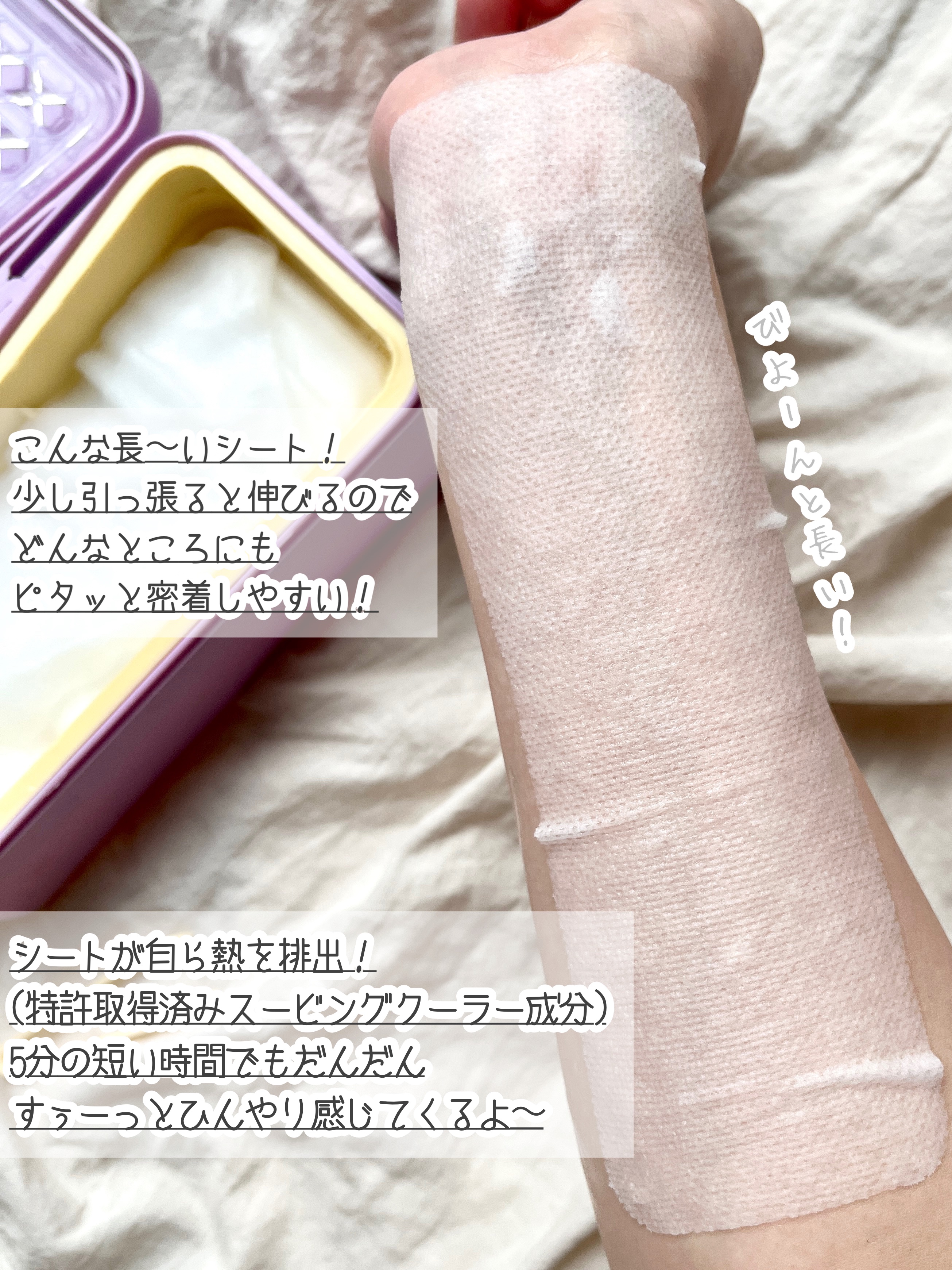 ・ポアミニマイザー →開き毛穴が気になる、優しく角質ケアをしたい方に ・ハイドレーティングエフェクター →お肌に水分補給、鎮静ケアをしたい方に 長方形のバンドはよく伸びて、気になる部分に手軽に貼って集中ケアできるので色んな使い方ができるのが嬉しいです♡