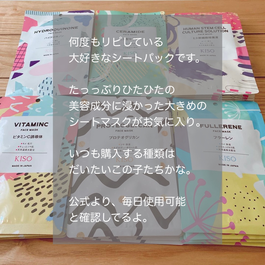 使うのチョー楽しみな話題のパック達!KISOフェイスマスクしっかり実感30枚セットレビューKISOのフェイスマスクしっかり実感30枚セットを購入30弱の種類から選べる六種類ですが私は、レビューの人たちが推していたヒト幹細胞、レチノール、ビタミ...
