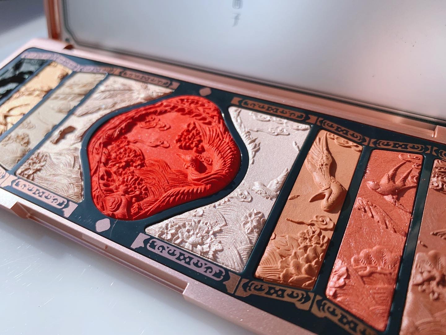 彫刻が美しい‼️安全で安心なパレットです🌷🌸 中国式の美学 古典的な屏風に、芸術品である「百鳥朝鳳」を浮き彫りの形で再現。 厳選された粉質 なめらかな粉質使用で、ぽかしやすく、初心者でも安心に使える。