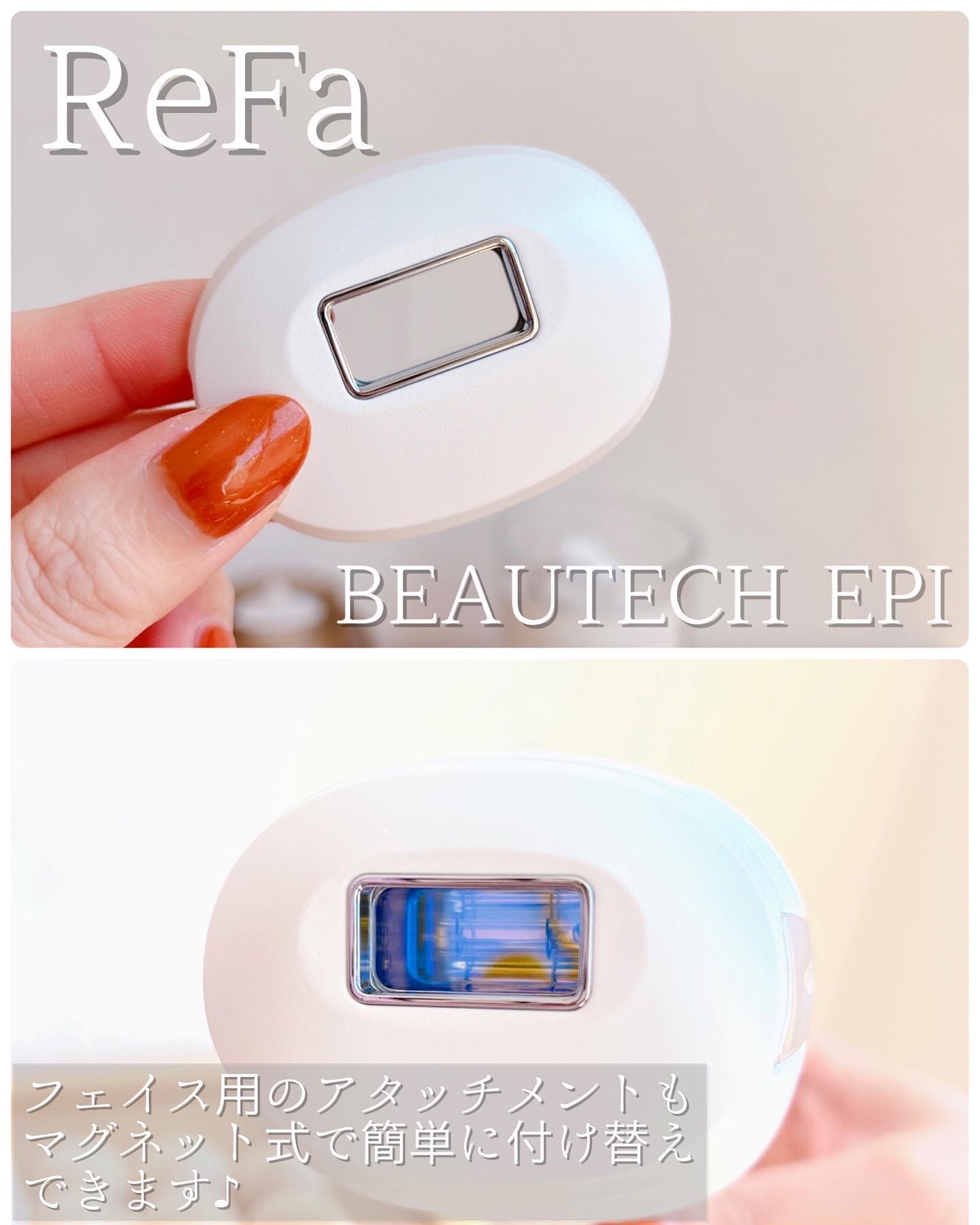 ReFa BEAUTECH EPIを遂に使い始めたよ🤍 箱から光美容器、ギャランティーカードまで全てがリファらしくて、本当に素敵なの🥹 シンプルで無駄のない美しいデザイン🤍 使い方もシンプル!オートモードに設定すれば1回ずつボタンを押さずに自動で照射できて便利✨ リファは見た目が可愛すぎて使うのを楽しみながらムダ毛ケアできてる🐰🤍