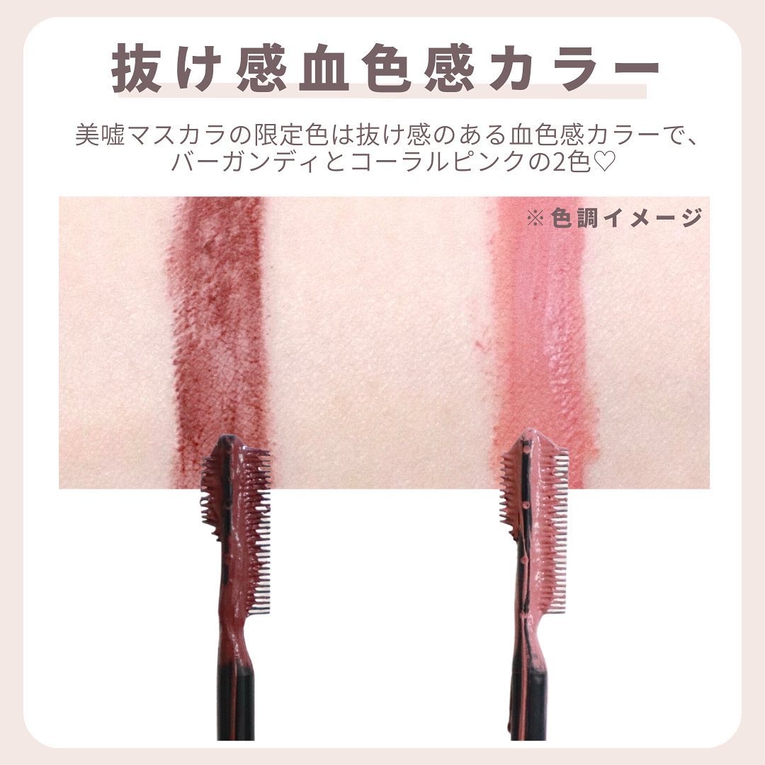 - 根元セパレートでまつ毛の先まで目にフェイク。 まつ毛が1本1本セパレートして根元が開いていると、目のフレームがなくなり、まつ毛の先まで目そのものにフェイクできる。 盛らなくても、抜け感のある大きな目もとへ※ ※メイクアップ効果 ◆お湯オフタイプ <PK-1 コーラルピンク><RD-1 バーガンディ> 限定色 ■Wしなりコーム:0.3mm間隔の極細コームで1本1本のまつ毛が繊細にセパレート ■のび~る液:糸を引くマスカラ液でダマなしロングまつ毛に