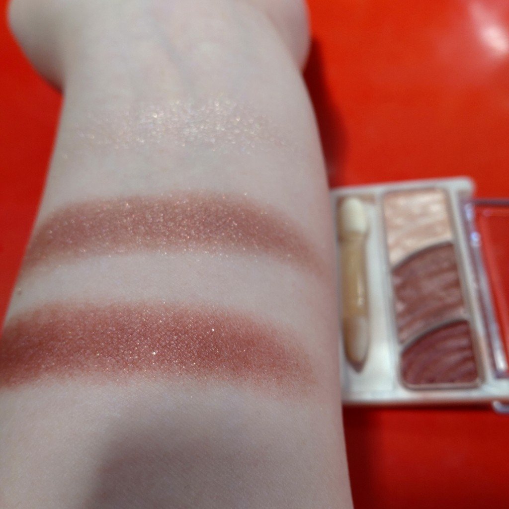 プチプラのクオリティじゃないっ!! 発売前からチェックしていたけれど、ここまで可愛いとは…😆 絶妙カラーで目もとのくすみを飛ばして*明るい印象に🩷 横割りグラデーションでメイクし、立体感をより出したかったので最後に1番左のカラーを上まぶたの真ん中と涙袋にのせています🙆 肌馴染みも良くて粉飛びも感じにくかったです💕 ブラウンの方も店頭に出てたら買おうかな💓
