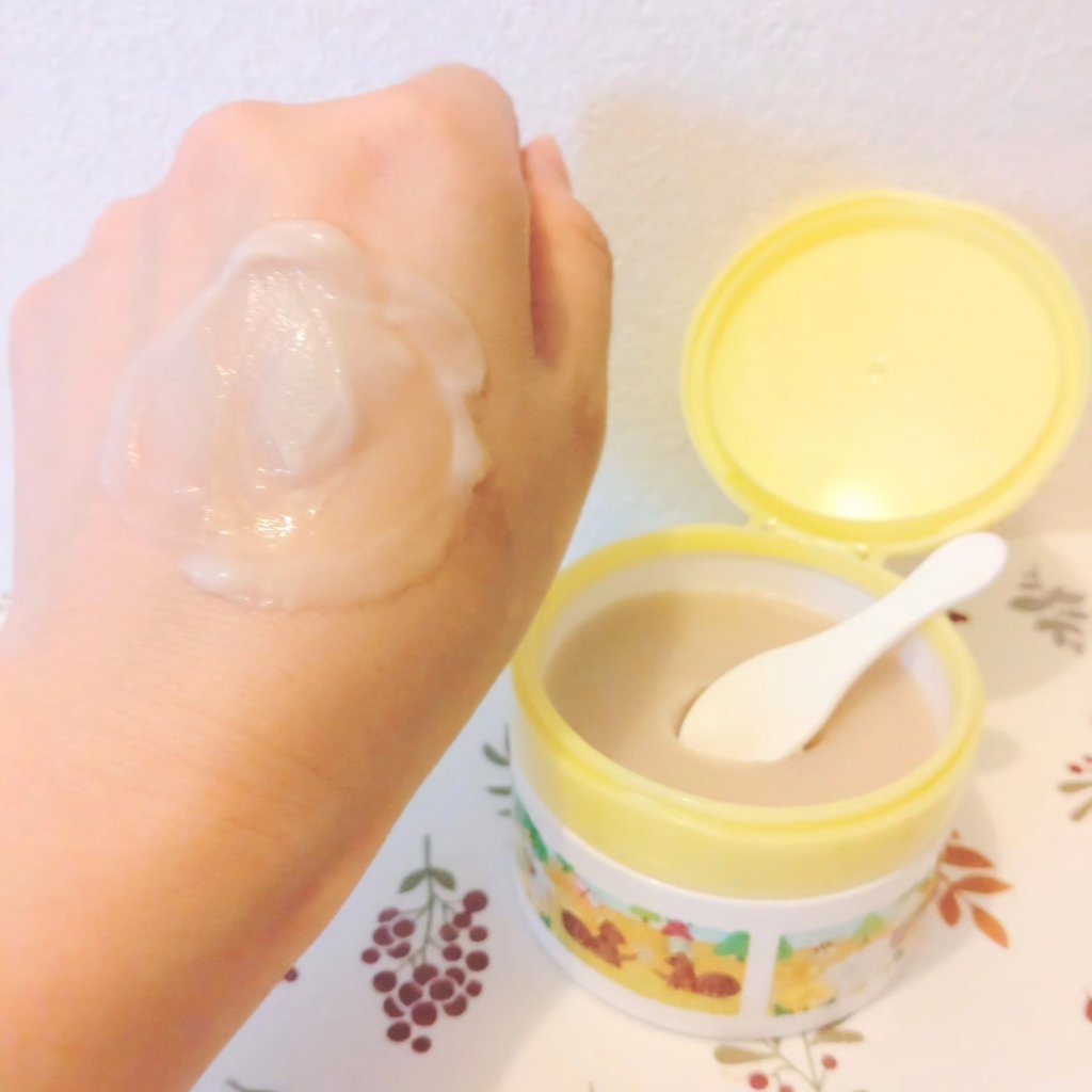 ほっこりする森の動物たちのイラストがかわいい♪ 乾燥小じわを目立たなくする※1 品 5 役の多機能クレンジングバーム クレイ×オイル×酵素で、しっかりメイクもするっとオフしながら乾燥による小じわを目立たない肌に! 毛穴ケア、保湿ケア、角質ケア、マッサージ、メイク落としの5つが、これ1つで◎ クレイ(赤泥)、ローズヒップオイルなど、こだわりの成分配合 ジャーのフタを開けると、ビックリ!! 赤色のスキンケアは初めて。 中には清潔に使えるスパチュラ付き。 そのスパチュラ山盛り一杯すくって、手にのせ、メイクした肌になじませていきます。 肌にのせると、少し固めのテクスチャーだったバームが、体温でとろっと溶けるので、軽くなじませるだけでOK! ふわっとフルーツフラワーティーの少し甘めの香りです♪ 洗い上がりも、しっとりした使い心地です◎