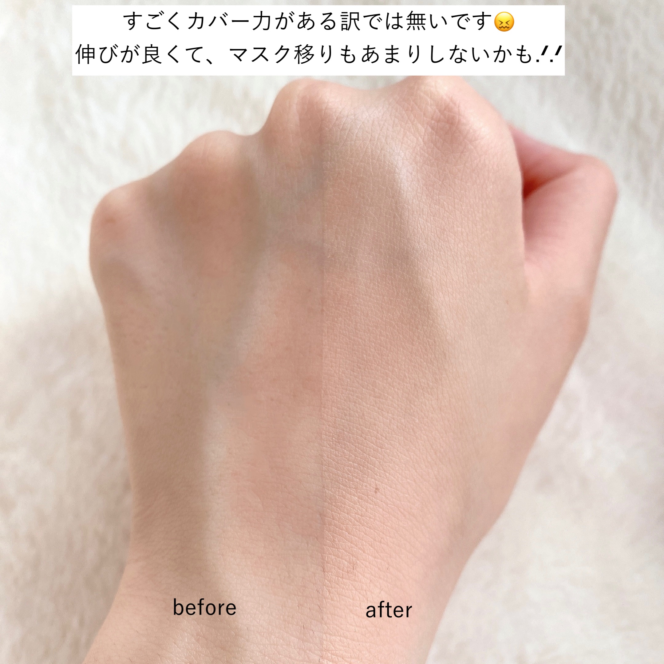 - SPF50+ PA+++ ハイカバーでマットな仕上がり。フィルムコーティング仕様でマスクにファンデーションがつきにくいです。密着力が高く、長時間メイクの仕上がりをキープします!