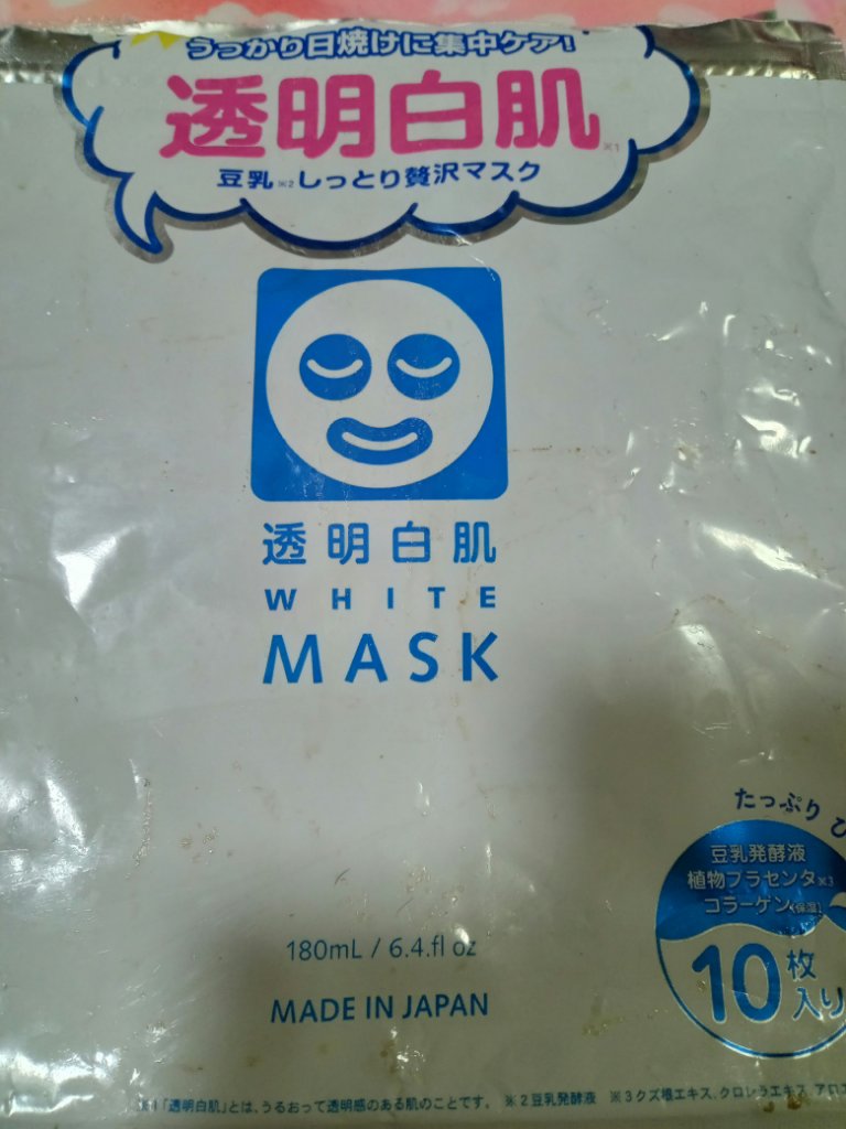- <ホワイトマスクN> 水、グリセリン、BG、エタノール、ヒアルロン酸Na、加水分解コラーゲン、豆乳発酵液、クズ根エキス、クロレラエキス、アロエベラ葉エキス、ユキノシタエキス、ボタンエキス、ダイズ種子エキス、クエン酸、クエン酸Na、キサンタンガム、(スチレン/VP)コポリマー、ポリソルベート80、メチルパラベン、フェノキシエタノール