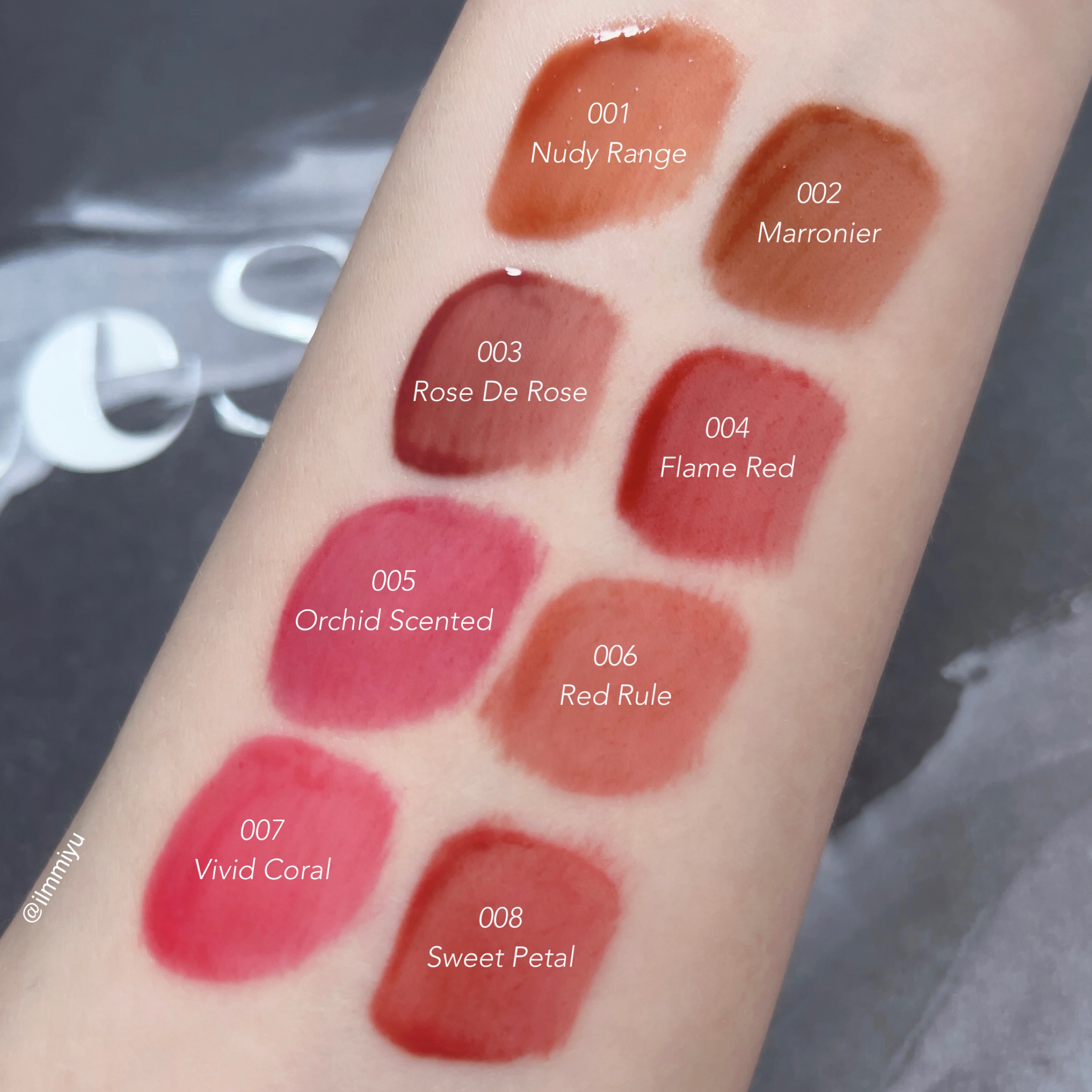 重ねるほど鮮やかに🫶発色そのまま透け感ティント🌸♡♡ArteSinsaのビルダブルデューイフィットティントをパーソナルカラー別に4色スウォッチ☺️ArteSinsaアルテシンサビルダブルデューイフィットティント001NudyRange/002...