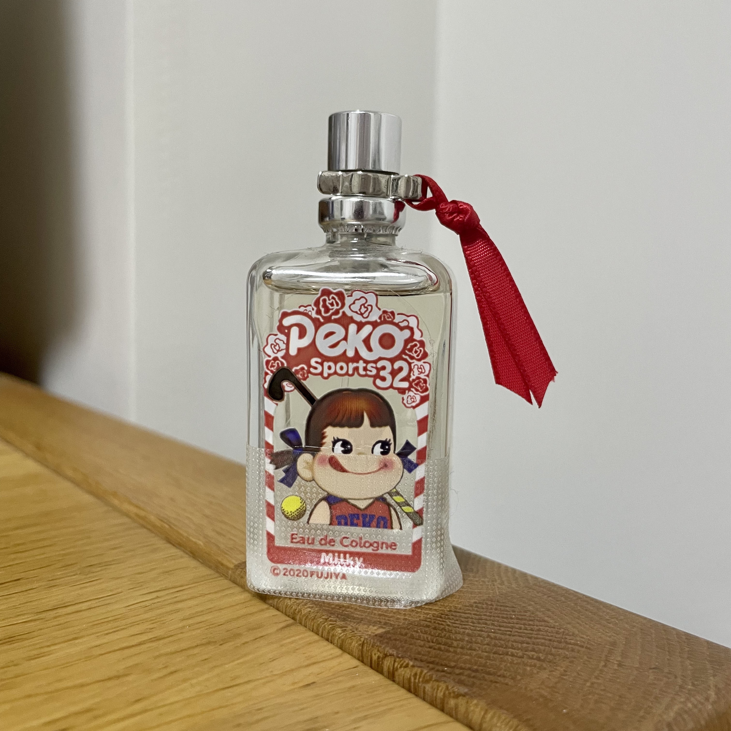 《ペコちゃん×アクアシャボンペコちゃん運動会コロンミルキーの香り》〈オーデコロン〉30mLAmazonで購入。ペコちゃんハンドタオル入り。言い方悪いけど、ねっとりした甘いミルキーの香りがする。たまに無性に甘い香りが嗅ぎたくなるからそれ用に購入...