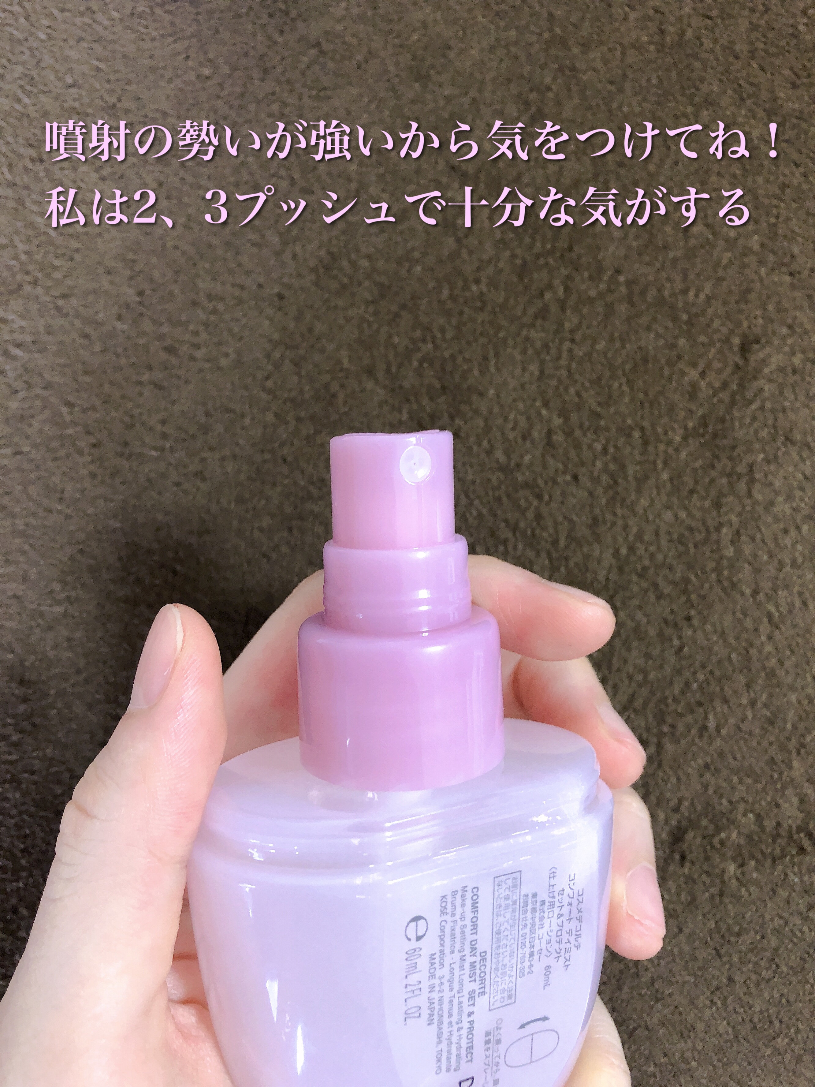 メイクキープミストが欲しくてコスメデコルテのを購入しました🙌 ピンク色でコロンとした感じのこのパケが可愛すぎる🥰 ミスト状になっていてベタついたり香りが強すぎたりもないのですごく使いやすいです!