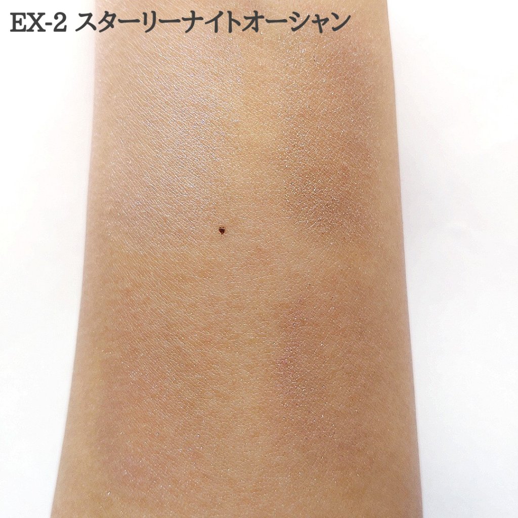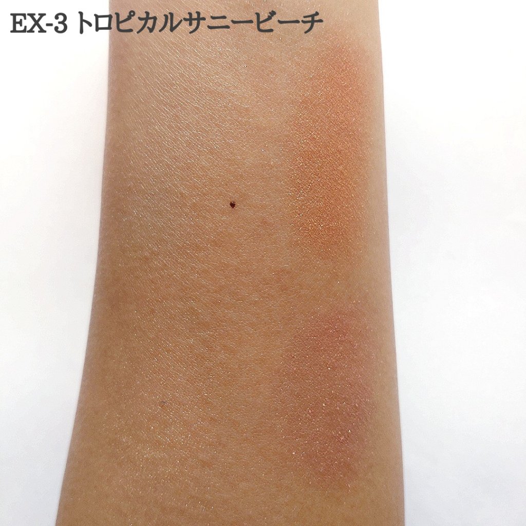 - <EX-1 ピンキーサンライズ> 合成フルオロフロゴパイト、ジメチコン、タルク、シリカ、リンゴ酸ジイソステアリル、マイカ、トリ(カプリル酸/カプリン酸)グリセリル、ラウロイルリシン、ダイマージリノール酸(フィトステリル/イソステアリル/セチル/ステアリル/ベヘニル)、スクワラン、(ジメチコン/ビニルジメチコン)クロスポリマー、ミリスチン酸亜鉛、ワセリン、セスキイソステアリン酸ソルビタン、キャンデリラロウ炭化水素、ポリグリセリル-3ポリジメチルシロキシエチルジメチコン、(ジビニルジメチコン/ジメチコン)コポリマー、トコフェロール、水、(C12,13)パレス-23、(C12,13)パレス-3、フェノキシエタノール、デヒドロ酢酸Na、クロルフェネシン、エチルパラベン、メチルパラベン、(+/-)Al、アルミナ、カオリン、グンジョウ、コンジョウ、酸化チタン、酸化鉄、水酸化Al、酸化スズ、ホウケイ酸(Ca/Al)、黄4、青1、赤202、赤226 <EX-2 スターリーナイトオーシャン> 合成フルオロフロゴパイト、ジメチコン、タルク、シリカ、リンゴ酸ジイソステアリル、マイカ、トリ(カプリル酸/カプリン酸)グリセリル、ラウロイルリシン、ダイマージリノール酸(フィトステリル/イソステアリル/セチル/ステアリル/ベヘニル)、スクワラン、(ジメチコン/ビニルジメチコン)クロスポリマー、ミリスチン酸亜鉛、ワセリン、セスキイソステアリン酸ソルビタン、キャンデリラロウ炭化水素、ポリグリセリル-3ポリジメチルシロキシエチルジメチコン、(ジビニルジメチコン/ジメチコン)コポリマー、トコフェロール、水、(C12,13)パレス-23、(C12,13)パレス-3、フェノキシエタノール、デヒドロ酢酸Na、クロルフェネシン、エチルパラベン、メチルパラベン、(+/-)Al、アルミナ、カオリン、グンジョウ、コンジョウ、酸化チタン、酸化鉄、水酸化Al、酸化スズ、ホウケイ酸(Ca/Al)、黄4、青1、赤202、赤226 <EX-3 トロピカルサニービーチ> 合成フルオロフロゴパイト、ジメチコン、タルク、シリカ、リンゴ酸ジイソステアリル、マイカ、トリ(カプリル酸/カプリン酸)グリセリル、ラウロイルリシン、ダイマージリノール酸(フィトステリル/イソステアリル/セチル/ステアリル/ベヘニル)、スクワラン、(ジメチコン/ビニルジメチコン)クロスポリマー、ミリスチン酸亜鉛、ワセリン、セスキイソステアリン酸ソルビタン、キャンデリラロウ炭化水素、ポリグリセリル-3ポリジメチルシロキシエチルジメチコン、(ジビニルジメチコン/ジメチコン)コポリマー、トコフェロール、水、(C12,13)パレス-23、(C12,13)パレス-3、フェノキシエタノール、デヒドロ酢酸Na、クロルフェネシン、エチルパラベン、メチルパラベン、(+/-)Al、アルミナ、カオリン、グンジョウ、コンジョウ、酸化チタン、酸化鉄、水酸化Al、酸化スズ、ホウケイ酸(Ca/Al)、黄4、青1、赤202、赤226