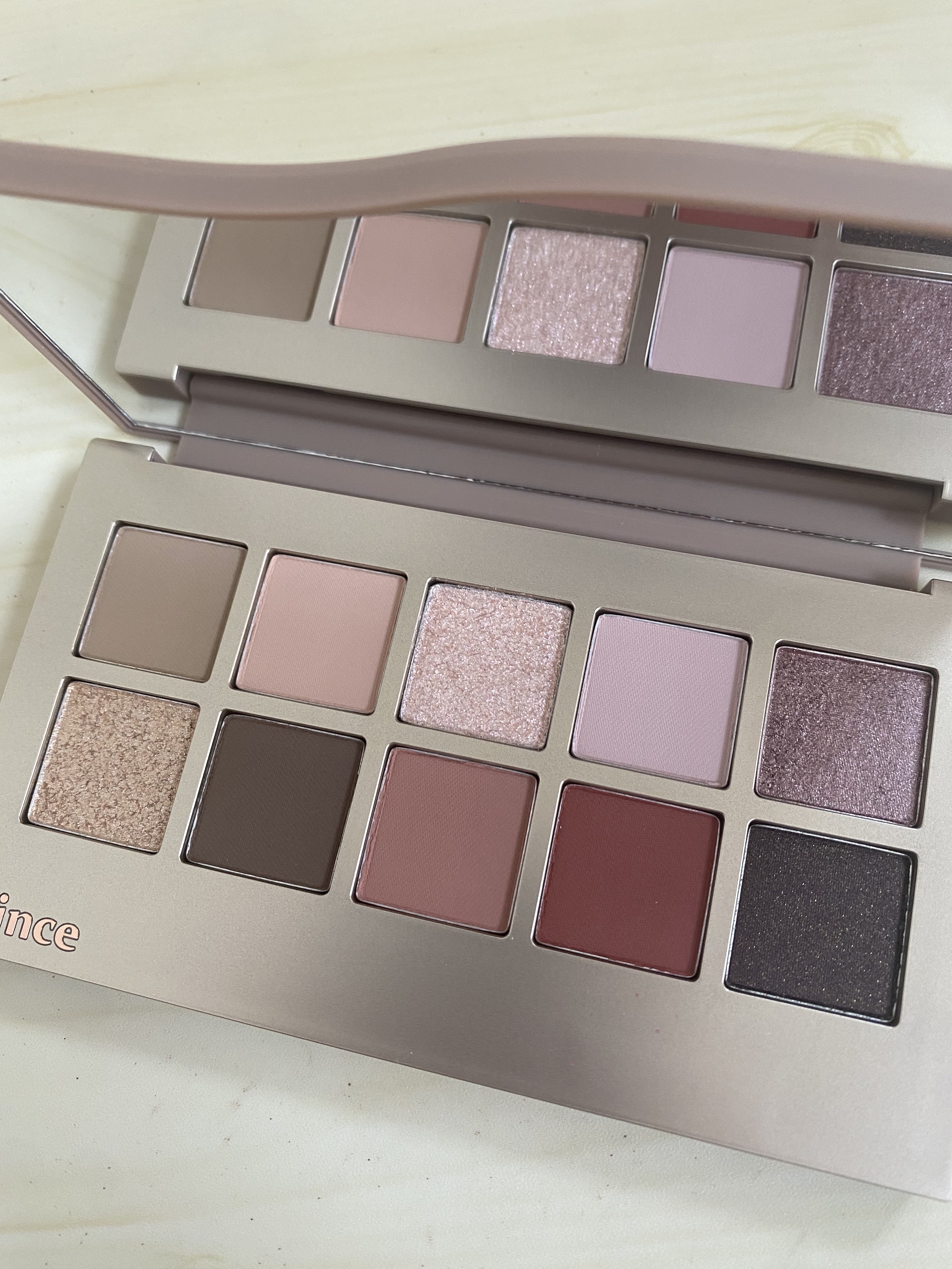 びっくりするほど粉質が柔らかくて しっとりしてるアイシャドウです👍 発色は結構薄めなので、 派手にしたくないオフィスに最適✨ 大きい鏡もついているので、 お直しコスメとしても使えます✌️ 手のひらサイズで大きすぎないので 旅行の時にも便利です🛩