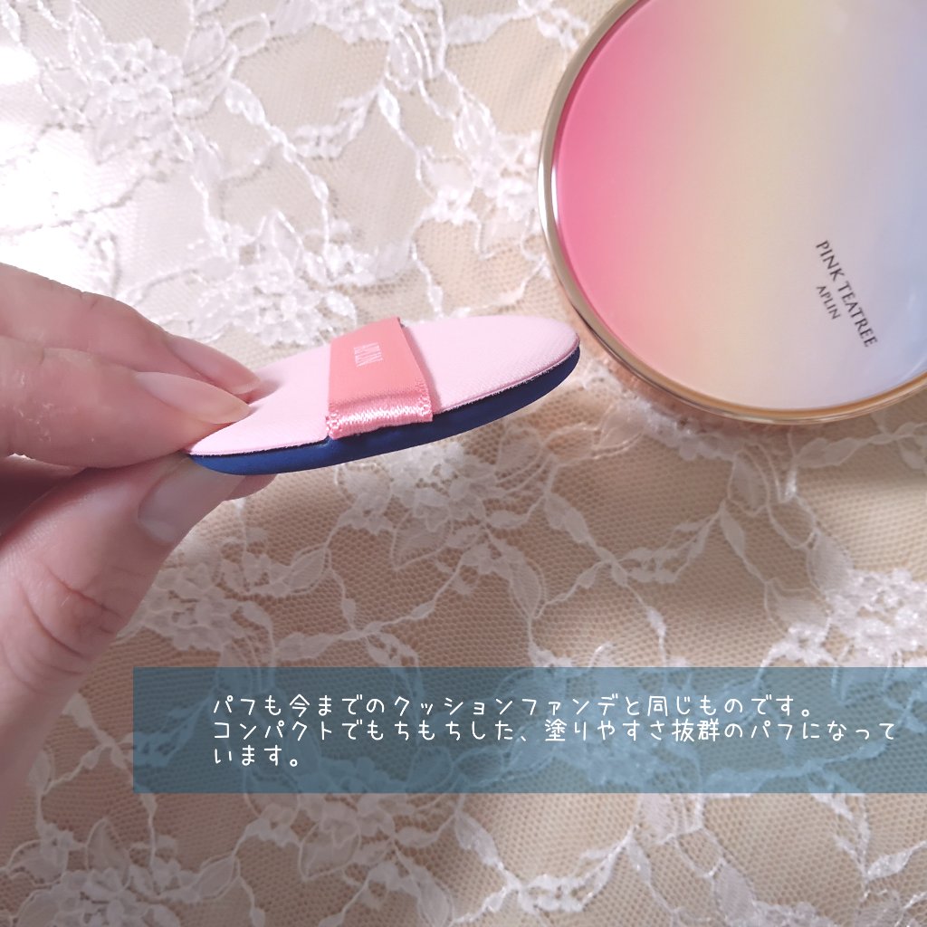 ケアしながらメイクアップ!夏にも冬にも使えるクッションファンデーション APLIN ピンクティーツリープライマーカバークッション 密着力がすごくて、夏の崩れやすい時期も汚く崩れる事がなかったし、乾燥の気になる今は、パサつきを感じずに両方の季節で使い心地が良かったです♪ ピンクのパッケージも可愛くてお気に入り💓 これでティーツリーやシカでケアができてるのならかなりのいいアイテムかな思いました!