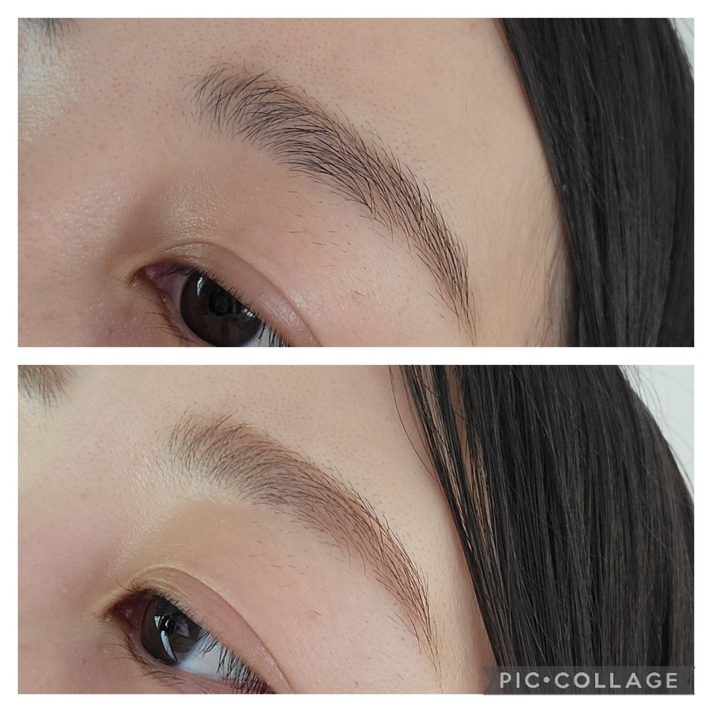 新色のモカグレージュ♡ 2025年3月1日ロフト先行発売 自然に垢抜けさせる、まろやかなくすみグレージュ。ほんのり眉がトーンアップして可愛い。 ブラシが小さいから、肌に液が付くことなく、短い毛までしっかり塗りやすかった👏