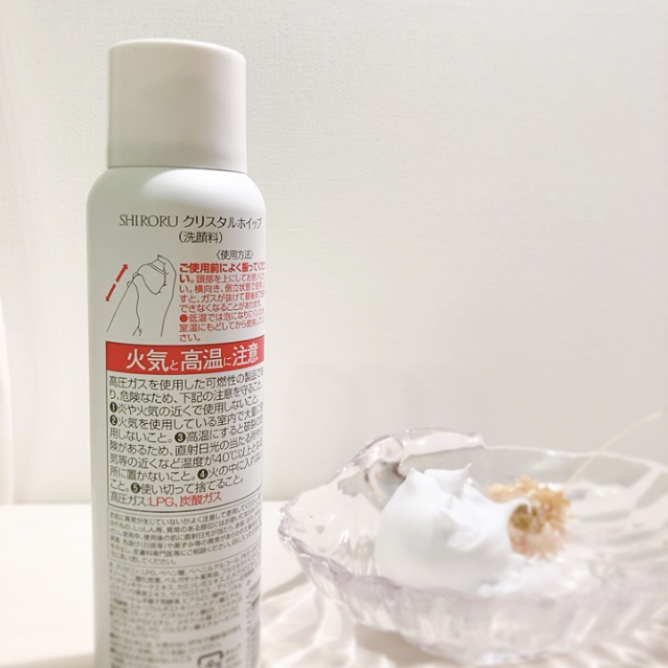 - <クリスタルホイップ> 水、グリセリン、LPG、ベヘン酸、ベヘニルアルコール、PEG−25フィトスタノール、ヒアルロン酸Na、加水分解コラーゲン、グリチルリチン酸2K、レモングラス葉/茎エキス、エーデルワイスカルス培養エキス、カミツレ花エキス、サッカロミセス/ハトムギ種子発酵液、二酸化炭素、ベルガモット果実油、フカスセラツスエキス、ラミナリアディギタータエキス、ヒメフウロエキス、クダモノトケイソウ果実エキス、サッカロミセス/デイリリー花発酵液、バチルス発酵物、2,4−ジカルボエトキシパントテン酸エチル、(メタクリル酸グリセリルアミドエチル/メタクリル酸ステアリル)コポリマー、BG、PG、パルミチン酸エチルヘキシル、TEA、メチルパラベン <120g> 水、グリセリン、LPG、ベヘン酸、ベヘニルアルコール、PEG−25フィトスタノール、ヒアルロン酸Na、加水分解コラーゲン、グリチルリチン酸2K、レモングラス葉/茎エキス、エーデルワイスカルス培養エキス、カミツレ花エキス、サッカロミセス/ハトムギ種子発酵液、二酸化炭素、ベルガモット果実油、フカスセラツスエキス、ラミナリアディギタータエキス、ヒメフウロエキス、クダモノトケイソウ果実エキス、サッカロミセス/デイリリー花発酵液、バチルス発酵物、2,4−ジカルボエトキシパントテン酸エチル、(メタクリル酸グリセリルアミドエチル/メタクリル酸ステアリル)コポリマー、BG、PG、パルミチン酸エチルヘキシル、TEA、メチルパラベン <120g(ディズニー限定デザイン)> 水、グリセリン、LPG、ベヘン酸、ベヘニルアルコール、PEG−25フィトスタノール、ヒアルロン酸Na、加水分解コラーゲン、グリチルリチン酸2K、レモングラス葉/茎エキス、エーデルワイスカルス培養エキス、カミツレ花エキス、サッカロミセス/ハトムギ種子発酵液、二酸化炭素、ベルガモット果実油、フカスセラツスエキス、ラミナリアディギタータエキス、ヒメフウロエキス、クダモノトケイソウ果実エキス、サッカロミセス/デイリリー花発酵液、バチルス発酵物、2,4−ジカルボエトキシパントテン酸エチル、(メタクリル酸グリセリルアミドエチル/メタクリル酸ステアリル)コポリマー、BG、PG、パルミチン酸エチルヘキシル、TEA、メチルパラベン <クリスタルホイップ【旧】> 水、グリセリン、LPG、ベヘン酸、ベヘニルアルコール、PEG-25フィトスタノール、二酸化炭素、ベルガモット果実油、フカスセラツスエキス、ラミナリアディギタータエキス、カミツレ花エキス、ヒメフウロエキス、クダモノトケイソウ果実エキス、サッカロミセス/デイリリー花発酵液、サッカロミセス/ハトムギ種子発酵液、ヒアルロン酸Na、バチルス発酵物、2,4-ジカルボエトキシパントテン酸エチル、加水分解コラーゲン、グリチルリチン酸2K、(メタクリル酸グリセリルアミドエチル/メタクリル酸ステアリル)コポリマー、BG、PG、パルミチン酸エチルヘキシル、TEA、メチルパラベン