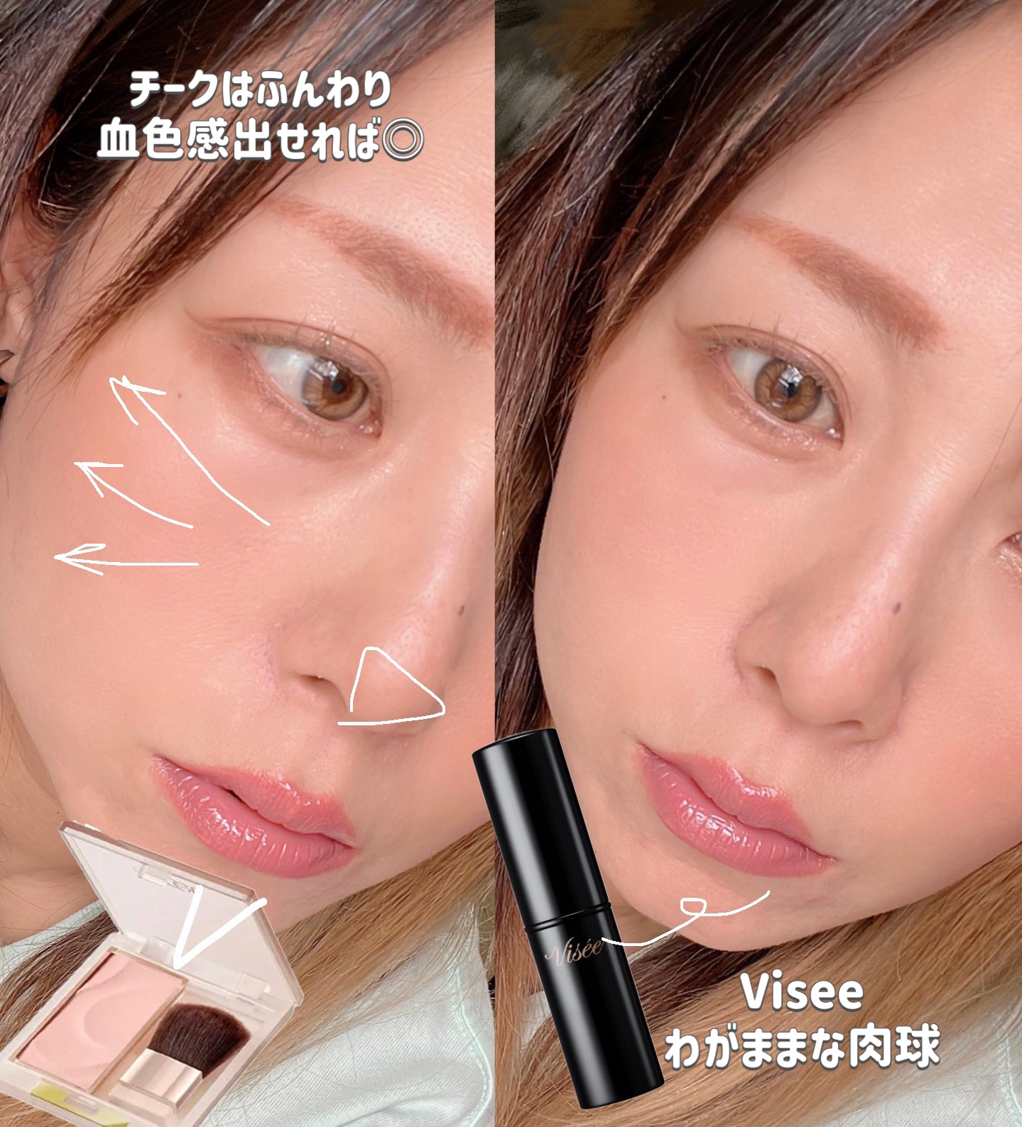 #今日のメイクプチプラでシンプルメイク💄アイメイクViséeニュアンスデューイクリエイターBE-2グレイスベージュチークexcelシームレストーンブラッシュSB02シスターリップViséeネンマクフェイクルージュPK851わがままな肉球...