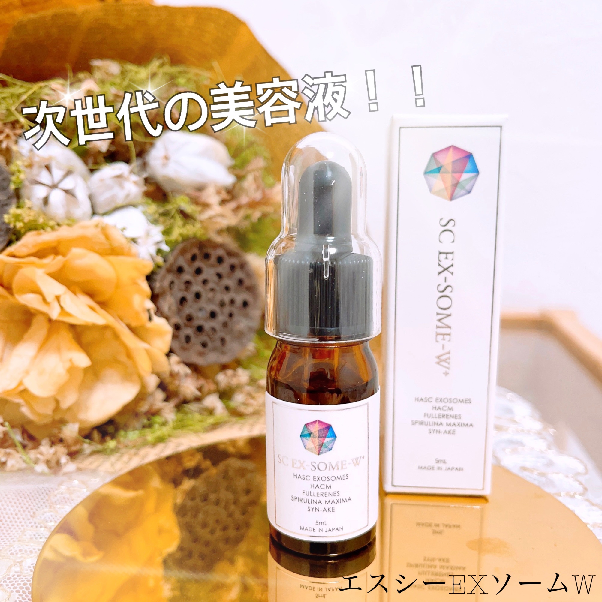 洗顔後気になる部分に1滴使用しています。 寝不足が続いていて、寝不足になると、私は目頭の下に変な皺?線が入ったり、くすみが気になりだすので、主に目の下に1滴を手のひらにだし、指でちょんちょんと両目の下に馴染ませ、手に余ったのを、ほうれい線にハンドプレスしています。 とろっとしたテクスチャーで、しっとりとするような使い心地で、次に使うスキンケアもスムーズにできて、いつものスキンケアがなんだかより充実しているかのようなそんな気分に♩ 赤みがでやすかったり、くすみやすかったりと自分の肌悩みにも向き合えているような使い心地で洗顔後の1滴が楽しみに◎ リップグロス位のサイズ感で、お値段にまずビックリしちゃうのですが、カズレーザーさんが出演されているテレビでエクソソームについての特集がされていて、その素晴らしさを知っていたので、納得のお値段✨