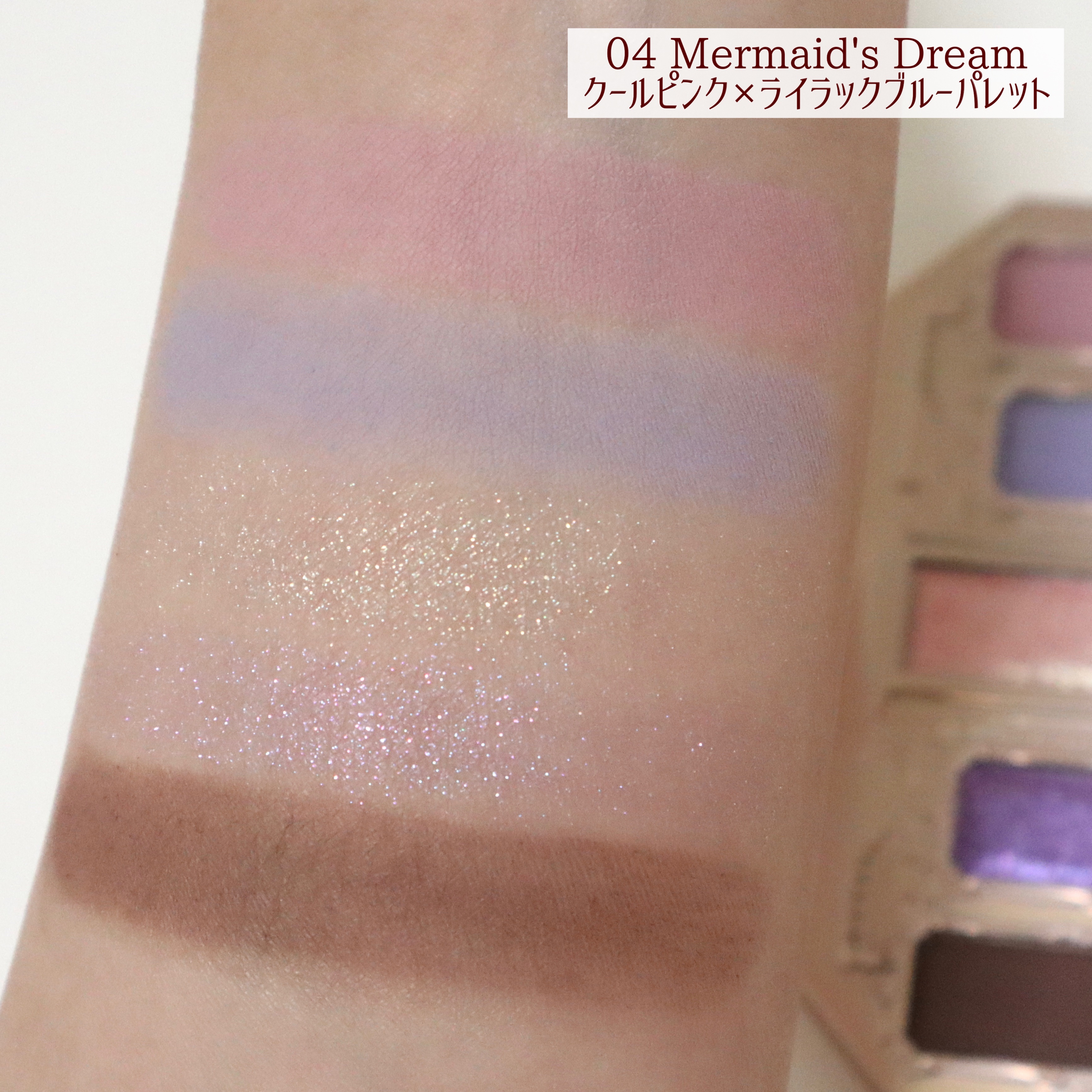 - 柔らかくサラっとしたマットと大粒ラメのグリッターカラーが目を引く、宝石箱をイメージしたパッケージデザインが豪華なアイシャドウパレット。使いやすいブラウン・ピンク系はもちろん、マーメイドをイメージしたパープルやブルーのカラー展開となっています。