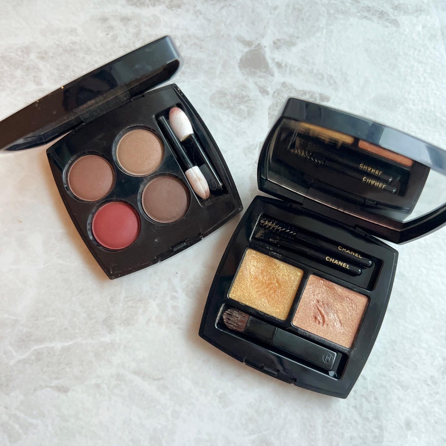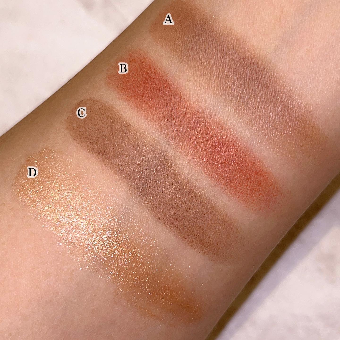 今回はいつも以上にしっとりした粉質✨ 4つとも可愛すぎて選べませんでした😂 ツヤ感強めなゴールドとブラウン。 めちゃくちゃ好きなやつです、はい。 右下はゴールドとシルバーのラメ✨ CHANELらしいプラムカラーのパレット。 発色も穏やかでふわっとしてるよ💐 今回はどれもしっとりした粉質だけどこれが一番しっとり感強めでクリーミーに感じたかな🤔 こっくりしたオレンジが可愛い🍊 これは落ち着いた配色…と思いきやキラッキラなベビーピンクのラメよ🫣 ベーシックなのに華やかにもなるこのラメにやられました🫠笑