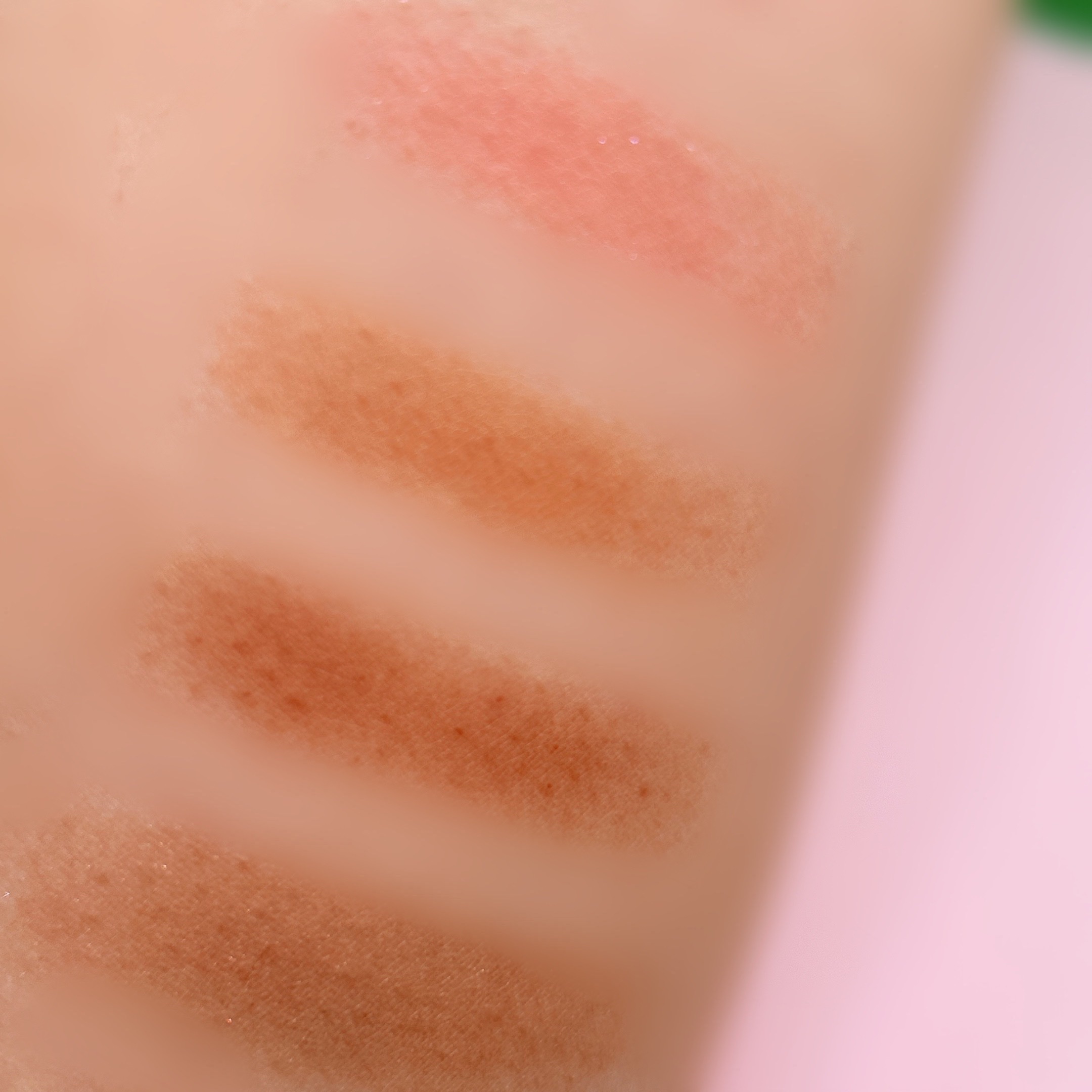 ベージュベースにゴールドとピンクのパールが入っているそうでツヤツヤの頬に仕上げてくれます☺️ 前回のラブリーチェリーは可愛らしい🍒イメージでしたが、今回のハニーシナモンは大人の色づく頬✨なんてイメージで。 可愛らしいメイクというよりも、シックで大人の女性的なメイクやファッションの時に大活躍☺️ 秋冬メイクにもぴったりだと思います😇✌️ ソフトな発色、なので調節もしやすいのでおすすめのチーク🥰💕