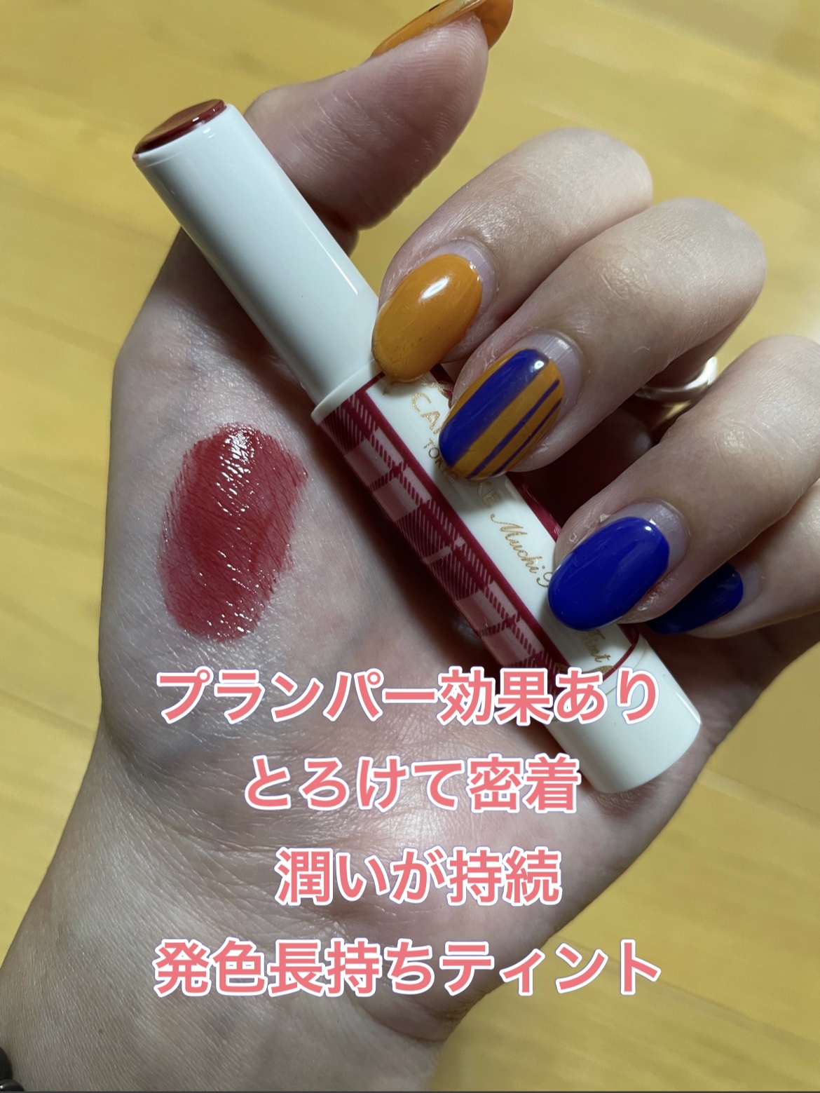 - とろけて潤うむっちりぷるぷる唇に! その名の通り、むっちりとしたボリューム感とぷるぷるツヤツヤな魅力的な唇に仕上がるティントリップです。 Point1【むっちりぷるぷる唇】 ・プランパー効果で縦じわカバー&ボリューム感のあるむっちり唇に ※メイクアップ効果による ・スーッとした清涼感のある使い心地 Point2【ちゅるんとしたツヤティント】 ・シロップのようなちゅるんとしたツヤが持続 ・塗った時の色が長持ちするティント処方 唇の上でとろけるメルティングオイルを配合しています。 するすると抵抗感がなく、なめらかな塗り心地で、重ね塗りをしてもムラなくきれいに仕上がります。 6種の美容保湿成分配合。リップクリームいらずで潤いが持続します。 ≪ワセリン・ヒアルロン酸・コラーゲン・アルガンオイル・ハチミツ・シアバター≫ 無香料 ・清涼感のある使い心地です。 ・大変やわらかい中身ですので、1㎜程度くり出して、ゆっくりやさしく塗布してください。 ・一度繰り出した中身は戻りませんので、出し過ぎにご注意ください。