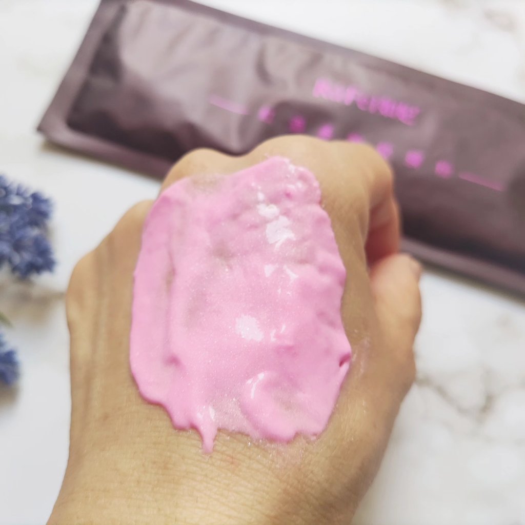 ピンク色のパウダーはワインエキス配合でキメを整えツヤを与えてくれます✨ 塗るとひんやり気持ちがよく、毛穴がキュッとフェイスパックより保湿力がありそうです。 剥がす時はポロポロすることもあるので注意が必要ですが、比較的剥がしやすいパックです。 最後は化粧水やクリームなどで仕上げて完成👍 とっても気持ちいい体験でした✨