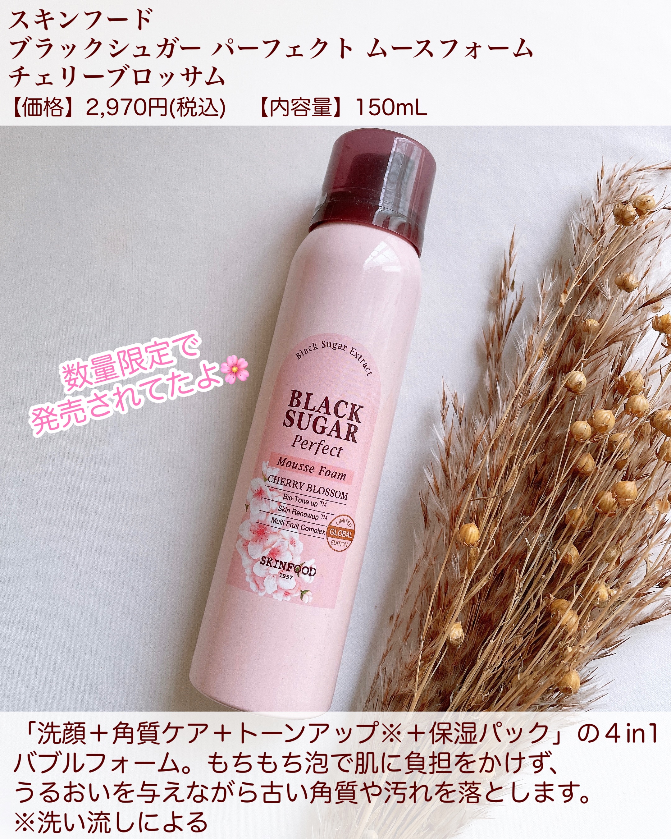 商品詳細情報SKINFOOD ブラックシュガー パーフェクト ムースフォーム チェリーブロッサム