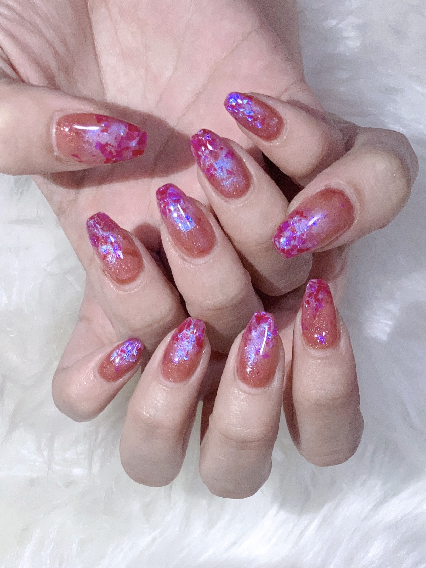 オリジナルフラッシュパープルみのあるピンク!オーロラのラメも入ってて綺麗です☺️🤍#nail#selfnail#ネイル#セルフネイル#ジェルネイル#セルフジェルネイル#セルフジェルネイル初心者#セルフネイル初心者#フラッシュネイル#オーロラネ...