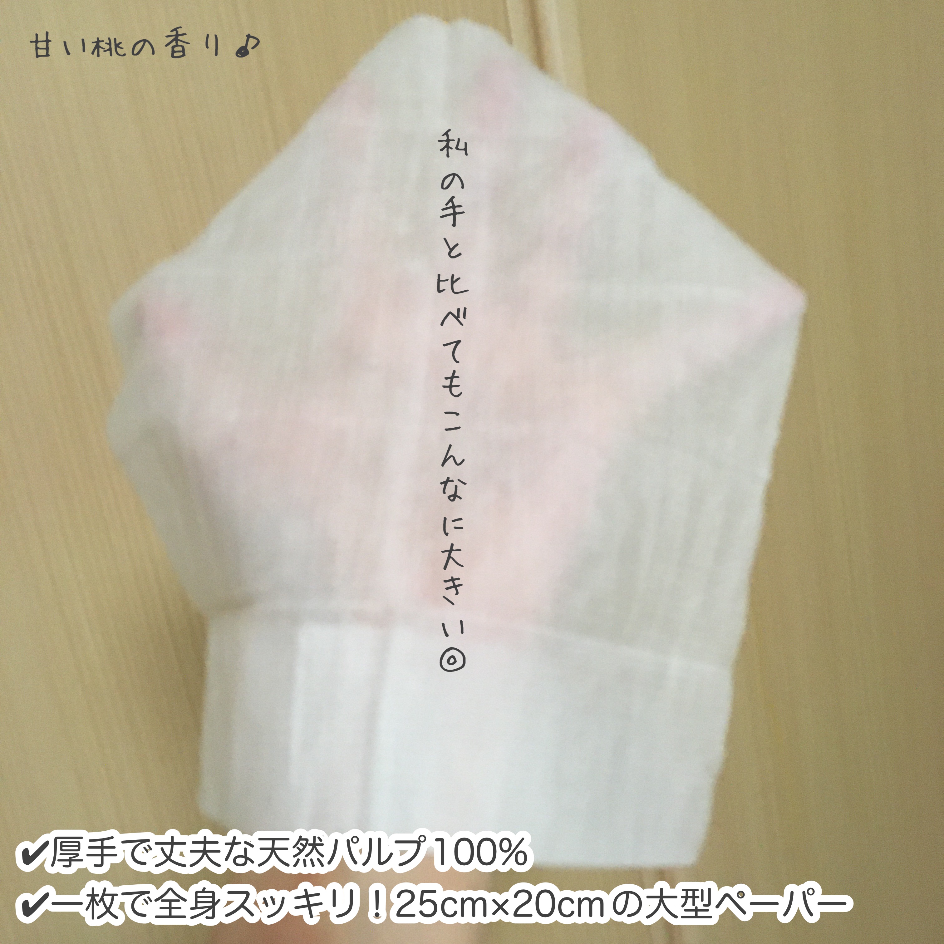| ボディケアランキング第39位 | 甘いピーチの香りで女性も使いやすいし シートも分厚く1枚で全身しっかり拭けます | 詳細を見る | |