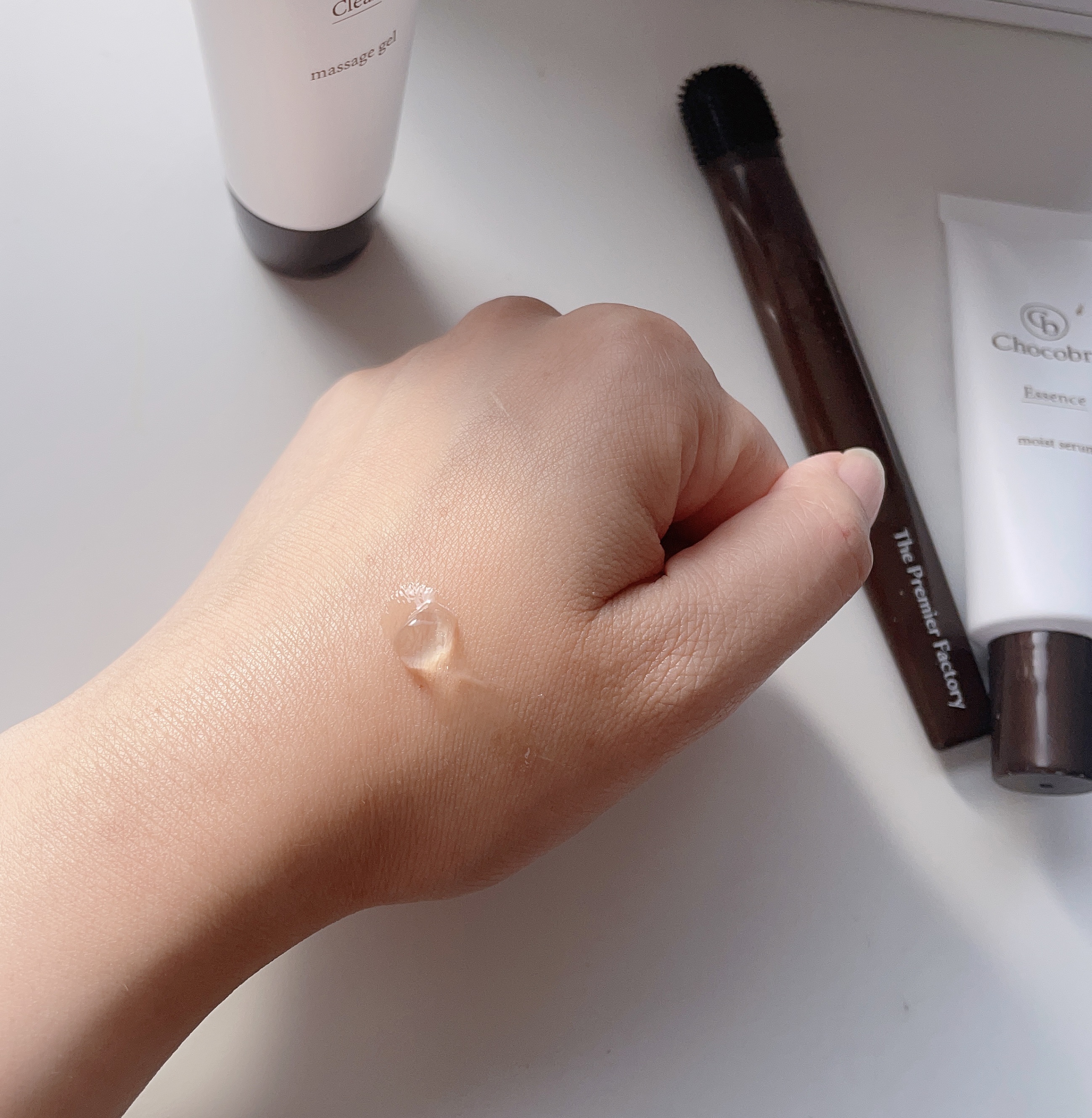 マッサージジェル粘度の高い温感ジェルで、保湿しながら、余分な皮脂をキャッチヒアルロン酸、コラーゲン配合 チョコレートブラッシュ(マッサージブラシ)粗面と細面のある、心地よい硬さのシリコン製のブラシでマッサージしながら角質を絡め取る痛すぎず使いやすいです(๑•̀ㅁ•́ฅ✨ モイストセラム浸透型ビタミンC誘導体(VCエチル)、セラミド、フルーツエキス配合角栓ケア後のお肌のキメを整え、毛穴の目立たないなめらか透輝肌へ肌なじみがよく使いやすかったです